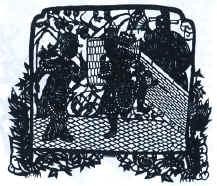 浙江民间剪纸源远流长,但由于纸张不易保存,已很难见到古代剪纸,笔者收藏几张清末民初的戏曲剪纸及更早一些的熏谱,弥足珍贵。对当时的剪纸可略窥一斑。所幸历史文献中有不少记载剪纸的逸闻轶事,让我们了解到更远时代的剪纸艺术。 春节,可以说是中国老百姓最重大的传统节日,过年挂贴"过门笺"也是节日的标志。"过门笺"是形似旌旗的小幡。宋、吴自牧《梦梁录》描写宋杭州立春时录:街市以花装栏,坐乘小春牛,及春幡春胜,各相献遗于贵家宅舍,示丰年之兆。其实这一风俗至迟也在唐代就开始盛行,唐代诗人韦庄《春盘》写道:"雪圃乍开红果甲,彩幡新剪绿阳丝,殷勤为作宜春曲,题向花笺贴绣楣。 正月十五元宵节,又名元宵灯会,确定元夕燃灯并成风俗,始于唐代。历代沿袭蔚然成风。民间剪纸广泛应用到元宵灯会,大概是宋代。《武林旧事》记载:"灯品至多,苏、福为冠,新安晚出,精妙绝伦。"当时著名的灯品有:镂刻金箔鱼形灯;用皮影手法制的羊皮灯,用五色纸和菩提树叶作成的走马灯(影灯)纸灯中最引人兴味的是妇女剪纸扎成的花灯。明人因汝成《西湖游览志余》中还录有瞿宗吉描写杭州一带正月十五元宵灯节的十五首小诗,其中一首写道:"香袋交垂八尺高,红灯影里见丝毫。旁人总道工夫巧,一月香闺弄剪刀。" 《武林旧事》元夕条云:或戏于小楼,以人为"大影戏",儿童相呼,终夕不绝。这里的"大影戏"其实是皮影戏,只不过当时剪刻皮影的材料除了皮革以外,还有纸片。南宋《都城纪胜》记载:凡影戏乃京师人初以素纸雕镞,后以彩色装皮为之。说起皮影,它与剪纸还有深厚的渊源关系。晋、干宝《搜神记》有剪纸为人的故事:汉武帝(刘彻)时,幸李夫人,夫人卒后,帝思念不已。方士齐人李少翁言能致其神,乃夜施帷帐,明灯烛,而令帝居他帐,遥望之,见美女居帐中,如李夫人状;环屋坐而步,又不得就视,帝愈益悲戚。李少翁为汉武帝剪李夫人象,栩栩如生。汉武帝为此作诗曰"是耶非耶,立而望之,翩何姗姗其来迟。"据说剪纸和皮影均可溯源到此。汉代,造纸之初,纸质粗糙,尚不能用来剪刻人物,这里的纸也许是某种丝织品,即缣帛一类的薄片。在宋代,制作皮影有用皮革也有用厚纸的,皮影与剪纸同出一源。它们之间的密接关系就更加清楚了。天籁阁是明代秀水(今浙江嘉兴)书法名画收藏家项元汴藏图籍书画的地方。所藏宋人画册中也有儿童表演皮影的情形。南宋诗人范成大在《灯市行》一诗中写到:"吴台今古繁华地,偏爱元宵灯影戏。春前蜡天后好晴,已作街头作灯市。叠玉千丝类鬼工,剪罗万眼人力穷。"虽然写的是苏州,但用来形容当时的杭州灯会也非常贴切。 元代《大德乐清县志》在描写乐清民间元宵佳节的情景时,写到:"里社笙歌达旦,通衢剪彩,与众共赏,为民同乐。"足见乐清剪纸,在700多年前就已经盛况空前了。 到了明代,花灯剪纸已相当繁荣。章铨《吴兴旧闻补》记载:"沈羽宸,长兴(在浙江省)人,寄居青镇,善画,装夹纱灯尤精致,其人物花鸟,俱有飞动之势。"这种夹纱灯用剡纸可成花竹鸟禽之状,接着晕染轻烟浓雾,再熔蜡涂染,继之用轻绡夹之,映日则光明莹彻,映灯则恍在雾中。 端午节是民间祛灾除病的节日,《荆楚岁时记》记载:"五月五日,四民并踏百草,采艾以为人,悬门户以禳毒气。"到宋代,不仅挂艾人,又兴起将天师(东汉天师道的创始人张道陵)挂在门户或插在头鬓的风俗。吴自牧《梦梁录》记载:"杭都风俗,自初一至端午日,以艾与百草缚成天师,悬于门额上,或悬虎头白泽"。天师骑艾虎祛除毒气、毒虫的风俗直接派生出门额悬贴剪纸艾虎或簪戴剪彩艾虎的习俗。 重阳节是庆祝丰收的节日,民间有登高赏秋,饮菊花酒、佩茱萸、食重阳糕等风俗。重阳糕上往往要插上应节之物--小三角旗,有木版印刷的,也有剪纸的。江南一带还要举办登高庙会,人们用纸扎成九层高的楼阁,楼阁的栏杆、屏风、门窗、墙壁均用细纹剪纸装饰。这些风俗至今江浙一带仍可看到。 在《梦梁录》中还记载有关婚礼上剪刻喜花点缀礼物。寿礼上以剪纸花样贴于寿桃,益增其甜蜜以及临安夜市卖异色影花扇(剪纸扇)的故事。说到剪纸扇不能不提到浙江硖石、嘉兴一带流传的"彩画刻纸伞",与"剪纸扇"有异曲同工之妙。都是用到"镞刻"纹样于宣纸上,以上下两张宣纸将此刻纸夹在中间,托裱为一张,称为"夹刻纸"。扇与伞及灯彩往往用"夹刻纸"制作。1965年,江苏江阴县出土了一件明代"夹刻纸"扇面。上下层是绵纸,中间夹刻的是《梅鹊报春图》,上下有缠枝纹样,扇面涂以饰之,呈浅棕色,洒金点点,清晰可见,成为稀世之珍。 值得一提的是,周密在《武林旧事》中记载,在南宋的行都临安(今杭州)商业非常发达,许多小工艺应运而生,当时出现了专门从事剪纸的行业,被视为"小经济",指小本经营。有"剪字"、"剪镞花样"、"镞影戏"等。《严州建德县志》还记载了有名有姓的擅长剪纸的名手,"林文耀,字纲斋,幼即工书,中年失明,乃剪纸为字,势飞动若龙蛇,点画不差毫发。室人装裱成轴,易薪米以自给,人称之曰'林剪'。" 以上零碎资料可看见,浙江剪纸至迟在唐代就已出现,宋代始盛,元代已很发达,明清愈益精致。 ##########NextPage########## 浙江剪纸主要分布在浦江、缙云、乐清、永康、桐庐、象山、玉环、平阳、仙居、临海、瑞安、磐安、东阳、遂昌等地。其中尤以浦江、缙云、乐清、永