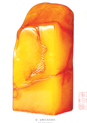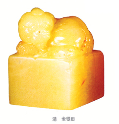 清 黄金黄2.3×2.3×5.6厘米 田黄为福建福州寿山乡所产,色黄,仅零星地深埋于寿山溪两侧溪田下,故名田黄。据专家检测,田黄石属地开石(不同于芙蓉、青田属叶蜡石),且含极少的辉锑、氧化铁矿物质,在特定的水田底下,水分、温度等多种外部元素对地开石长期浸润后,使地开石集合体产生染色作用,致使田黄石形成黄色基调,外浓而内渐淡,有宛如鲜蛋黄般的绚烂耀眼的光泽。田黄外表被石皮包裹,透灵的肌理显现着细密的“萝卜纹”,间有红格、红筋,组合成堂黄亮澈、精光内溢的奇妙特征。严格地讲,明清时鉴定田黄的标准当高于现在。田黄石色因浓淡妍素而殊姿,历来皆以色泽而分别称之为黄金黄、橘皮黄、鸡油黄、金桂黄、银桂黄、枇杷黄、熟粟黄、桐油黄、金银田、红田、白田、黑田(乌鸦皮)等。古来皇室宝尚明黄,此石且质佳、材美、物罕,故被誉为“石中之王”、“石帝”,成为石中至尊。 田黄是天生的印石(行话称“掘性”、“独石”),大不过拳,重量过两即称大料,性佳色好,但有“冻”与欠“冻”之别,印苑里将半透明、结晶体状称为“冻”,冻石金贵于欠冻者。明清时期,得拳石,多裁割为方章,上雕以钮,往往成印仅十得其三四。后因吝其材,不忍裁割,随石形状在其表作薄意雕,遂成为定式。故大旧而方整者尤为珍贵。清初即有诗人吟句“别有连城价,此石名田黄”,印石中古来只有田黄是以重量论价的,石美量重者尤昂贵。初出时即价同赤金,所谓“一两田黄一两金”。因此石绝产已久,而求者如云,佳石难得,今则一两旧佳石值黄金百两以上。足见其身价的无与伦比。(信息来源:新民晚报 韩天衡) 清 金桂黄2.9×2.9×8厘米 清 田黄冻3.5×2.5×6.5厘米 清 金银田2.8×2.8×3.5厘米 |