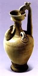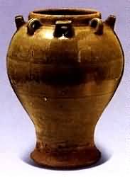 隋代瓷器仍以青瓷为主,也有一定数量的白瓷。隋瓷的胎子普遍较 厚,胎质坚硬,釉子无论青绿、青黄还是黄褐,均为玻璃质,施釉不到底,大多数都有垂流现象。隋瓷多光素无纹,部分带纹饰的主要以印、划贴为主。所谓印花,是把模子上的纹饰压印到瓷胎上,使纹饰凸起,再施釉入窑;划花是用尖状工具在胎子上划出纹饰,施釉入窑;贴花是将用手捏或模印等做成的小纹饰片贴到胎子 上,再进行烧制。常见纹饰有团花,草叶、莲瓣。卷叶、波浪和弦纹等,个别的也有加饰黑褐彩的。 隋代白瓷是从青瓷转化而来的,最早的白瓷是由北 朝的制瓷工匠创烧的,但这时的白瓷釉不是真正白色的,而是透明的玻璃釉罩在白胎上。器物胎质较白,釉面光润,已基本上看不到如南北朝白瓷中白中泛青或闪黄 的痕迹。隋代制瓷技术的重要成就之一,是成功地在瓷胎上采用白色化妆土。上釉之前,精选含铁成分少的白瓷土细密地挂在坯上,可以避兔瓷器烧成后胎体表面粗 糙、坯面出现孔隙及胎体颜色不好等弊病,增强釉色透明莹润的质感,特别是对白瓷釉色透明度的提高和呈色的稳定,起着重要作用。 隋代瓷器器 型主要有四系或六系盘口壶和罐、龙柄鸡首壶、唾壶、多格盘、五盅盘,高足盘,瓶、砚、盘和碗等。这时的壶、罐造型比南北朝时更加瘦高,讲究曲线美,肩部大 多塑"U"字形系,也有桥形系。鸡首壶的鸡头挺胸耸冠,手柄一端的龙首探进盘口,非常生动。除了鸡首壶。还有数量极少的其他动物形壶,这一时期还出现了双 龙柄盘口壶。碗多为直口深腹,假圈足稍高。盘有大有小,有深有浅。高足盘的足上小下大呈喇叭状。 白釉盘口瓶 隋 高47厘米 瓶作盘□,细颈,鼓腹,通体施白釉,釉面光润,釉色透明莹润,具有质感。 白瓷双系鸡首壶 隋 27.4X7.1X7厘米 壶作盘口,细颈,颈部饰凸弦纹两周。肩部丰满,自肩以下腹壁逐渐内收,至底部又外侈,平底。肩部向前伸出一鸡 首,高冠圆目,张口作啼鸣状,颈上有印痕以饰羽毛。肩的后部向二伸出一把手,把端作璃首,张口衔壶之盘口,把为两条形合成。肩的左石各有一系,作双瓣重合 形,下作一圆饼饰。肩与颈相交处有凸弦纹一周,腹部饰凹弦纹两周。胎灰,施白色化妆土,透明釉。近底部及底无釉,器身有细小冰裂纹。 青瓷印花罐 隋 21Xl6X9·4厘米 此罐直口,肩部饰有4个方形耳,方形耳问又各饰4个U字形耳,共有8耳。深腹,腹壁向下内收,至底部又外侈,工 底。肩、腹各有弦纹3周。肩刻有覆莲瓣一周,腹部饰圆、方相间的花纹一周,圆形为八瓣莲花形,万形框内为竖条纹。胎灰黄色,器表内外均施青釉,釉不到底,器身冰裂纹。此罐出土时内盛核桃,但已炭化。 |