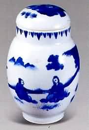 崇祯朝传世品中没见过官窑瓷器,只有民间烧的佛前用器、一般民用瓷器及外 销瓷。有一部分供器胎子相当细润,甚至达到清代瓷器胎子细密的程度,施釉稍薄、较白、光润,青花色深蓝,很稳定。还有一种胎子较粗的,胎体厚重,施釉厚,釉子光润泛青。釉中有极细小的黑点,青花颜色暗蓝闪灰并晕散。崇祯青花瓷常见的纹饰有人物故事、达摩、罗汉、高官、仕女、婴戏、龙、凤、狮子、麒麟、牛、马、牡丹、梅鹊、山水、树石、花鸟鱼虫、蕉叶等,粗犷随意。还有一类瓷器,胎子细密坚致,釉面光洁,青花颜色青翠,色阶层次少,一直被认为是清代康雍时期 的,因在崇帧二年(1629)沉船中打捞上很多类似的瓷器,使人们的认识发生了转变,和传世品中署"大明崇祯年制"款的类似瓷器互为印证,明确了这类瓷是 专为外销生产的外销瓷。 崇祯朝的日常民用瓷,青花颜色有灰蓝、深蓝,有晕散的也有稳定的。纹饰一般画得比较潦草,常见纹饰有螭虎、凤鸟、游鱼、山水、树石、花鸟、玉兔、婴戏、达摩、和尚、高土、八仙、荷塘、花卉、松鼠葡萄、松树、垂柳、月影、博古等。 崇 帧时期主要器型有盘、碗、罐、花抓、香炉、净水碗、筒瓶等。多酱口,除部分盘、碗外,一般底足较高,足外墙下边无釉,底足内亦无釉。盘、碗有跳刀痕,有的 足底留有没旋削净的小台、窑渣、鸡心凸起及火石红斑块。筒瓶、花抓、罐等立器一般为细砂地,有的能看出旋削后留下的弦纹。 崇祯青花瓷器带年款的较少,佛前供器多有长篇铭文,字体比较古拙。崇祯时的斋堂款很多,往往写在碗心上,如"翔凤堂"、"于斯堂"、"博古斋"、"雨香斋"、"松石居"等,碗底常见"富贵佳器"、"雅"、"白玉"、“宜窑”、"片玉"以及银锭、方胜、兔子等图记款。 青花婴戏笔筒 明宗祯 高20·3厘米 此笔筒直口平沿,直腹中部微内收,下部对称两兽头,平底,为明晚期流行的笔筒式样。胎体厚重,胎质坚硬,器身纹样为婴儿嬉戏图,用深色青花渲染,形象逼真,造型生动。 青花人物纹莲子罐 明崇祯 高16·3厘米 因器形极似莲子而得名。罐体青花绘两位高士在谈经布道,悠闲自得。场面简洁,纹饰生动,意境深远。 青花人物故事纹筒瓶 明崇祯 高47片厘米 崇祯时期瓷器多绘人物故事及说经讲道图,所绘云彩都是缭绕于川峰的"括号"云,树丛矮小细密,粗看也像"括号"。此瓶是崇祯时期典型的外销瓷纹饰,代表了崇祯及明末瓷器的最高水平。 |