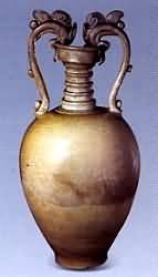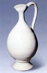 唐代白瓷窑口多集中于北方,主要有河北的邢窑、定窑,河南的巩县窑、密县窑,山西的浑源窑、平定窑,陕西的黄堡镇窑。五代时期,江西景德镇也开始烧造白瓷。 邢窑白瓷按其胎、釉的质地,可以分为粗、细两大类。粗白瓷的胎质又有粗、细之分,粗胎的一类胎色灰白,胎质粗糙;细胎的一类胎体致密,胎色较淡,但仍不 够白,往往施一层白色化妆土。粗白瓷的釉质较细,有些还有细碎的纹片,釉色为灰白或乳白色,还有黄白色。细白瓷的胎色纯白,个别的白中闪黄釉质很细,釉层 中有微细的小棕眼,器物多施满釉,釉色纯白或白中微泛青色。邢窑白瓷多是素面无装饰,唐代中期以后特别是晚唐五代,邢窑常常采用雕塑、堆贴、印花、刻花、压边、起棱、花口等装饰方法。 唐初定窑瓷器胎质较粗,胎色为青灰色,淘洗欠精者呈褐色,瓷胎均己烧结;白釉器物内璧施满釉,外施半釉,釉面光 润,积釉处呈灰色。唐代中期,胎土经过仔细淘洗,胎质坚硬,胎色纯白,釉直接施于瓷胎上,无化妆上,釉色乳白,个别积釉处呈灰绿色或浅青白色,釉质细洁失 透。晚唐至五代时期胎土质地此前期更细,胎壁薄而轻巧,釉质细洁,呈乳白色,器物除底足等接触面外,均施满釉。 晚唐五代直到宋初,定窑还有一 种带有"官"或"新官"款字的精白瓷,其基本特征是:胎薄轻巧,质地细洁,呈纯白色;釉面滋润,釉为乳白色或白中泛青色,除底足外,均施满釉。一般讲," 官"、"新官"款宇刻在胎薄细腻、制作精巧,釉色纯白或白中闪青器物上的,属于唐、五代时期;刻在釉色白或白中泛黄或部分微微闪青,有时带有刻划花装饰器 物上的,属于北宋早期;刻在用覆烧法烧成,口沿无釉并带有刻划花装饰的器物上的,则属于北宋后期。 邢窑白釉碗 唐 直径14·3厘兴 口外卷贴壁成唇,斜弧壁,浅宽足似璧,全器光素无纹。胎体坚致,釉色雪白,有"类雪类银"的说法。 白釉双龙耳瓶 唐 60.8*12X15.5厘米 此瓶盘口,弦纹长颈,长圆鼓形腹,平底。两只龙柄连接于盘口与瓶肩之上,龙口紧紧衔住盘口,形成了此瓶最突出的部分,给人以匀称稳重之感,同时亦便于提拿,集装饰性与实用性于一身。瓶身通施白釉。此类器物形成于隋代,盛行于唐代。 邢窑白瓷执壶 唐 高33·2厘米 邢窑白瓷在唐代与越窑产的青瓷同时著称于世,代表了唐代瓷器生产的两大主流。此壶线条流畅,造型优美,胎质坚硬,釉色洁白莹透,通体素净,有 "美银类雪"的美誉。 白釉广腹盖瓶 唐 高 14·6厘米 |