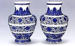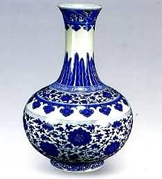 道光朝的青花比嘉庆青花瓷又差了一截,早期和嘉庆朝的差不太多,有一部分稍精细一点。道光瓷的总特点是器型粗笨,青花颜色部分淡雅,部分深蓝,呈色较稳定,浮在釉面上。淡描勾莲纹饰比较常见,线条纤细浅淡。瓶、罐等大 器上多加"喜"字,而盘、碗,水仙盆等一般无"喜"字。常见纹饰还有缠枝莲、鸳鸯荷莲、菊花、石榴、佛手、三果、石兰、山水风景、婴戏、仕女、八仙、云 龙、夔凤、花鸟、鱼藻、博古、八宝、瓜蝶等。 道光青花瓷胎子细密坚致,大件器物胎子厚重,小件盘、碗有的比较薄细,釉子较肥呈粉白色,而大件 器物白中泛青,釉面呈微波起伏状,有的是“荞麦地”。道光间还出现 "冬瓜罐",形状像冬瓜,有的带盖。另外还有花口盘、羔碗、温锅、笔筒、墩式碗、将军罐,赏瓶、盆、洗、灯笼尊、玉壶春瓶、梅瓶、锥把瓶、烛台、鱼缸、花 觚等。道光时的盘、碗和雍正时的一样,口面比较大。绣墩从道光开始较前代矮、拌,墩面平,有的下凹;墩面中心部位和捉手部镂空钱纹或联钱纹;鼓钉小而密,直到清末都是如此。一般器物的造型都比较笨拙。 道光青花官窑款一般为六字三行篆书,笔道细而有力,写得很规矩。这时很盛行"堂名款",最著名的是 "慎德堂制"、"退思堂制"款。"慎德堂"是道光皇帝本人的堂名号,款字用侧锋写出,很规矩。"退思堂"款写法和"慎德堂"一样,也应是官窑瓷。 青花开光花卉纹茶壶 清道光 高17厘米 "大清道光年制"六字三行篆书款,道光本朝。盖顶及肩部绘如意纹边饰,腔部绘莲瓣纹,通体绘宝相花,两侧海棠形开光,内绘牡丹花卉图。画工细腻,色彩淡雅,是道光官窑青花瓷的典型器。 青花缠枝莲三元尊 (一对) 清道光 高26星米 "大清道光年制"六字三行篆书款,道光本朝。仿古代青铜器造型,广口外撇,缩颈长圆腹内收,圈足,肩腹部两边饰 兽面耳。胎质略厚,釉面光润洁白。缠枝花卉为主题纹饰,以弦纹分为两层,颈、足绘蕉叶莲瓣纹,口、胫画海水波涛,纹饰柔细,青花色泽深蓝,造型规整,是道 光官窑中的精细之作。 青花缠枝莲赏瓶 清道光 36.5X24厘米 "大清道光年制"六字三行篆书款,道光本朝。撇口,长颈,球形腹,圈足。口沿下饰海涛纹及知意云纹,颈下部饰蕉叶纹,颈肩部饰回纹,肩腹部如意纹下饰3道青花,圈浅,胫部饰仰莲纹,肩部及外足墙饰缠枝花开。青花发色纯正,白釉较薄。 |