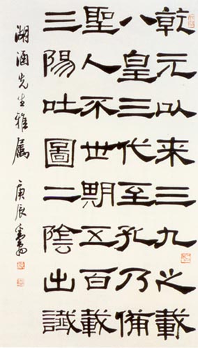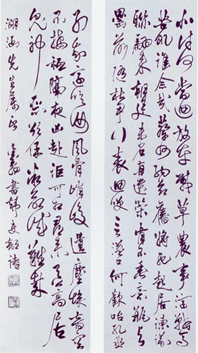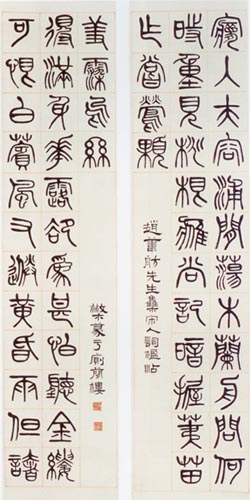 邓散木先生( 1898 年至 1963 年)号钝铁,又号粪翁,晚年一号废,故又号一足,上海市人,1954 年以后定居北京,直至逝世。散老早在上世纪 30 年代就在上海成名,与白蕉先生多次在沪上办展览,曾风靡上海。书法真、草、隶、篆四体兼擅,书法之外,尤精篆刻,有“北齐南邓”之称。著有《三长两短斋印 存》、《篆刻学》、《书法学习要读》等。 1962 年散老所作的行书条幅,书写的是唐代李白的《荆门送别》。这是散老的晚年书作,书风凝练、平淡,整幅作品洋溢着温柔敦厚的气息。用笔精到轻灵,字与字之间 牵丝映带自然,生动细腻。有些字笔划本身写得比较轻细,但仍有粗细变化,显得温婉流畅,姿态万千。在结体上,有《圣教》、《兰亭》的影子,流利妍美;“远 ”、“送”等字,又有唐欧阳询的遗意,险劲清刚,不失沉厚之态。在章法布局上,属疏朗匀停一路,不徐不疾,一气贯通。在以行草书为主体的前提下,间杂草 字,显得和谐自然。 邓散木,篆书,水墨纸本,对联 邓散木,隶书,立轴,水墨纸本 邓散木,行草四屏,立轴水墨纸本 另一件草书条幅,写的毛泽东的词《忆秦娥·娄山关》。散老精于草法,所作草书笔势活泼巨动,但又沉稳不浮,或曲 线婉转流动,或直线劲挺贯穿,笔断而意不绝,行尽而势不尽,满纸云烟缭绕。结构省简,点画牵连,密而不挤,疏而不散,章法上纵有行,横无列,既有魏晋风 骨,又有唐宋遗韵,字字珠玑,通篇精彩。欣赏 幅草书,我们仿佛在观赏敦煌壁画,字字若飞天之神临风起舞,时而平驰,时而斜出,时而升仰,时而俯下,百姿千态,令人产生丰富的瑕想。 这两件墨宝我早已把它们装裱成轴子,陪伴笔者度过了 40 多年的时光,每每欣赏散老的墨宝,笔者从内心深处感念散木先生书法艺术的博大精深。 |