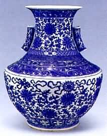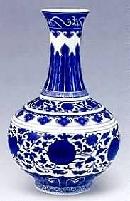 光绪朝青花瓷颜色既有黑褐色也有淡蓝闪灰色的,仿康熙青花颜色浓 艳,但纹饰没有层次。光绪民窑青花瓷中开始出现"洋蓝"色,蓝中闪紫红,非常扎眼,青花飘在釉面之上。常见纹饰有龙凤、云鹤、花卉、花鸟、花果、狮球、八 仙、八宝、博古、山水、人物、百鹿等。光绪青花瓷胎子厚重笨拙,比同治时的坚致,有的比较细密。釉面粗松稀薄,白中泛青,有的很白。常见有赏瓶、龙缸、玉 壶春瓶、绣墩、灯笼尊、茶壶、蒜头瓶、天球瓶、贯耳瓶、餐具、盖罐等,造型比较规整。民窑瓷器较粗糙,大器很多,如大瓶、大罐等。 光绪青花官 窑瓷器的款识多用楷书,也有篆书的,宇体修长清秀。"大洁光绪年制"六字两行或三行,以及"光绪年制"四字款均有。民窑多不署款,有署 "丁未玉梅堂制"、"兴邑复古窑造"、"清华珍品"、"乐道堂主人制"、"燕赵悲歌之士、孔子后四十一癸卯制"、"嘉泰松轩"、"俭存斋"等款的。光绪仿 康熙青花瓷较多,冰梅罐上的冰只平涂,并不画出冰碴;所仿的花觚、棒槌瓶、大罐等胎体均不够坚致,釉面稀薄不匀没坚硬感,胎釉结合也不紧密。纹饰虽艳,但 没有层次,浮而不沉。光绪仿康熙浆胎青花瓷,手感轻飘,胎和釉均没有坚致细密感。 宣统时的青花瓷色调浓艳明快,不晕散,所绘纹饰比较精细。常 见纹饰有龙凤、团龙、镶凤、流云、牡丹、缠枝莲、八卦、云鹤、海水怪兽、松竹梅三友、荷莲、宝相花、八宝、八仙、博古、五谷丰登等。宣统青花瓷胎子极细极 白,瓷化程度很高,胎轻体薄,非常匀称;釉面匀薄,颜色很白很亮,高度玻璃化。因是现代化生产,胎体很规整。主要器型有赏瓶、棒褪瓶、玉壶春瓶、盖罐、碗、盘、杯等。青花官窑的款都是楷书,一般六字两行,宇体清秀工整,笔画圆润有力。民窑器有年款的多为印章式红彩款,大部分无款的和光绪青花近似,不易区 分。 青花缠枝花卉纹盖碗 (一对) 清光绪 直径10.5厘米 "大清光绪年制"六字二行楷书款,敞口,深腹,圈足。内绘青花缠枝莲纹,外壁饰青花花开纹及莲瓣纹,青花发色浓墨,绘画严谨细致。 青花缠枝莲托八宝纹尊 清光绪 高48·7厘米 撇口缩颈,肩外撇,圆腹,圈足,颈两侧饰贯耳,因此有人称之为贯耳尊:因其形似盖碗,亦有称之为盖碗尊的。主题纹饰缠枝莲托八宝,亦称八吉祥。边饰为海水莲瓣,两耳青花地白竹。纹饰纤细繁密,青花深蓝稳定,是光绪时期的代表作。 青花缠枝花卉赏瓶 清宣统 高39.2厘米 长颈,球腹,白釉底,书"大清宣统年制"楷书款。此类瓶最早被称为"玉堂春瓶",始烧于清代雍正朝。因是帝王用于赏赐的制器,故又名"赏瓶". |