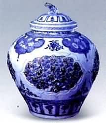 钴蓝釉瓷器是以氧化钻为釉的着色剂,在高温中一次烧成的一个新瓷 器品种。传世出土较多。造型有梅瓶、碗、高足碗、盘、爵等,蓝色深沉鲜艳。蓝釉瓷器的装饰手法有两种:一种是蓝釉金彩,即蓝釉烧成后,用金粉描绘图案,低 温烘烤而成;另一种是蓝地白花,常见的图案是蓝釉白龙,以蓝釉为地,上有印花白龙。 釉里红瓷器是元代景德镇新烧成的一个品种,它是在白色瓷胎上以 含铜的颜料进行绘画,然后罩透明釉一次烧成,但高温铜红釉对窑室气氛要求比较严格,鲜红色最为难得。元代釉里红瓷器的怡釉特征与同期青花器物的胎釉特征一 致,但器型较少。由于釉下红彩烧成难度很大,图案常有散晕现象,因此釉里红器物的纹饰也比较简单。釉里红瓷器有3种不同的装饰方法:一是釉里红线绘,二是 釉里红拔白,三是釉里红涂绘。 在国内外传世的元代釉里红瓷器中,有比较可靠年代依据的是1979年江西丰城发现的青花釉里红器物 (一件是青花釉里红楼阁式瓷仓、两件为釉里红俑,其中一件有大元至元戊寅(1278)的纪年,这几件器物的釉里红,都属涂绘的方法,红料都在塑成的立体器 形上着色,元代比较进步的涂绘釉里红,则是用红料涂绘出一定的图案花纹。所谓釉里红拔白装饰,是用釉里红涂地子留白纹饰,国内有江苏吴县出土的釉里红拔白 龙纹盖罐、北京故宫博物院所藏的釉里红拔白划花兔纹玉壶春瓶。这类玉壶春瓶的特点是口沿内壁往往也有釉里红色,颈下及底腹部上下各有二至三道弦纹。 关于线绘釉里红器,江西高安窑出土有釉里红开光花鸟纹大罐,国内外传世品中有多件玉壶春瓶及梅瓶,都是细线条描绘花纹的釉里红器。元代还把青花、釉里红技术结合运用,成品呈白地红、蓝花,十分真切。 景德镇窑釉里红飞雁衔芦纹匜 元 5.5X14.3X8.7厘米 一该器物敞口,底略内凹,长方槽形短流,流下有一卷方形系,口沿无釉,砂底。四外施青白釉,釉面光泽莹润。内壁的釉里红绘一周宽带纹,内刻水波纹;底心绘飞雁衔芦纹。 钴蓝釉白龙纹梅瓶 元 高24.5厘米 估 价:RMB2750000 元代是钴蓝创烧时期,蓝釉为地,留白装饰,俗称反青花,为收藏极品中的极品。此件瓷器釉色肥润纯正,瓶身硕大粗 壮,是元代梅瓶典型式样。所刻白龙方头细颈,利爪长鬣,蓝白色彩对比强烈,白龙细部用划花描绘使其具有立体感。龙纹为元代的典型纹饰,凶猛灵动,潜藏杀 意,观之惊心动魄,美不胜收。 青花釉里红开光楼花盖罐 元 通高41.2厘米 此大罐以覆盆式盖,顶塑一坐狮,腹部四周堆贴双勾菱花形串珠纹开光,大腹小口、短颈溜肩。肩部绘青花水波纹托衬 白莲纹,盖面、腹下部绘青花莲纹,颈、肩绘牡丹纹来装饰罐面。纹饰繁而不俗。在菱花形的开光里雕镂青花夹红的花卉,朵朵釉里红的花像镶嵌的红宝石,十分美 丽华贵,雕工也分外精细,是青花釉里红瓷器中的精品。 |