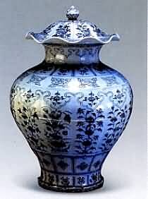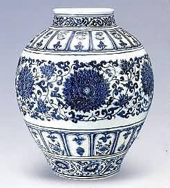 中国陶瓷发展史上,宋代是百花争艳,元代是一个过渡,明代则形成了几乎是景德镇一花独放的局面。明代景德镇的瓷器,以青花为最主要的产品。它代表了釉下彩发展的最高阶段。洪武青花 洪武官窑青花是承前启后的一代产品,继承了元青花传统,但工整有余,变化不多。图案题材以程式化的花卉纹为主,布局趋于简单,扁菊纹、缠枝纹或折枝莲叶 纹较为多见,龙纹出现五爪,五爪尖连成一个圆形,一般以三爪、四爪为多。造型以盘、碗、罐为主。除玉壶巷瓶、玉壶春执壶及口径在20厘米左右的大碗为釉底 外,其余均为糙底。糙底的盘、碗之类底部有红色护胎釉,且多数有明显刷纹。洪武青花瓷的图案以花卉纹为主,基本上和釉里红的花卉纹相同,特别多见扁菊纹,有的器物以缠枝扁菊为主题纹饰。从传世品及景德镇窑址发现的标本看,洪武年间以碗类为主的民窑背花粗瓷底部无釉,且有尖钉状凸起,仍保留了元代斜削足的特 点。 洪武官窑青花主要使用含铁量较低且淘炼欠精的国产青料,呈色多为灰蓝色。铁结晶斑点不明显。洪武青花不同于典型的至正青花的背翠艳 丽,世不同于典型永乐、宣德青花的浓艳色译而有自己的特点。明代永乐、宣德青花多采用进口苏麻离青料烧制,色彩浓艳的背花纹饰泛出点点银黑色结晶斑。这种 青料比国产青料铁的含量丰富,锰含量低。事实证明,青花料右不罩在釉下,烧出后则为黑色,近似唐代时耀州窑白地黑色的作品;如果罩在釉下烧制,成品则为灰 蓝色。有人曾用其窑址材料做过模似试验,将青花料罩上青白釉复烧,得到的是洪武青花蓝色。 青花缠枝菊纹棱口盏托 明洪武 □径19且匡米 估价:RMB2O0000一250000 浅弧壁和宽板沿被楔压成相等的八棱形,内外壁和板沿上的纹饰依次为临瓣仰莲纹、16组成双回纹、缠枝纹和8组折枝莲纹,每层纹饰均按模压的尺寸均匀排列:盖托中央绘折枝牡丹,外围凸脊以承杯,再外是缠枝菊纹;白釉黏稠。气泡密集,器底无釉,火石红显著。 青花缠枝莲大罐 明洪武 高 48·3厘米 估价 :RMBl800000- 2200000 成交价 :RMBl650000 青花花卉纹盖罐 明洪武 通高66厘米 景德镇窑洪武时烧造。胎体洁白坚密,釉色白而带淡青色,器身呈12瓣瓜棱形,盖作荷叶形,宝顶纽。青花釉色略呈灰褐。器形硕大,浑厚雄伟,通体装饰繁密而分明的17层花纹,主次协调,生动活泼,反映出当时高超的瓷器工艺制作水平。 |