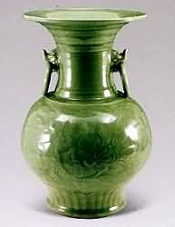 宋,元盛极一时的浙江龙泉窑至明代虽逐渐衰落,但明早,中期制品 仍十分精美。明代龙泉窑系的青瓷造型,大体上和元代一致,其风格和宋代的纤巧秀丽不同,而代之以硕大厚重。产品多大型瓶,盘,日用的小件器物较少。釉色已 失去南宋梅子青釉、粉青釉那种柔和、含蓄的艺术效果。这时的青瓷釉层薄而透明,光泽度较强。 从传世产品看,明代龙泉窑的制品有精粗之分。精品 胎色白中微闪灰、胎质细腻厚重,制作精湛,造型精美,施满釉,圈足底部留有刮圈垫烧痕。釉面光泽度很强,滋润匀净,釉色绿中微泛黄。器表多有刻划花装饰,图案构图疏密得体,刻花精细。粗品胎质淘洗不精,质地较粗。制作也不精细,胎体特别厚重,尤以底部为甚。所见多为碗、盘类制品,釉色多绿中闪黄。器皿仍采 用满釉刮圈垫烧,但工艺较粗,常见的有直口深腹碗等。装饰以印花和刻划花为主,图案纹样有器外壁的瘦长菊瓣纹,内里的花卉纹,以及颇有特色的印花历史故 事、二十四孝人物等。其中人物图多印在器内壁,人像旁根据人物的具体形象分别书 "孔子泣颜回","韩信武之才"等,由于制作较粗,印花纹样常有模糊不清之感。 针对不同的釉料性能,明代龙泉青瓷还形成有别宋瓷的装饰特色不 以釉色取胜,而以印花、堆贴,刻划花为主。明龙泉青瓷的装饰范围也大大增加。明龙泉青瓷正是利用釉的透明性能,采用刻、划,堆贴装饰,使作品另具一种工艺 美。但总的来说,明代的龙泉窑系,大多产品成型草率,器形笨拙,因而到清初以后,就停止了生产。 龙泉窑菱口暗花大盘 明 直径47厘米 估价:RMB700000~1200000 此类大盘为明代龙泉窑常见品种,胎体厚重,施釉比宋、元时薄而透明,装饰方法多刻划花卉。菱花口和凸棱壁使硕大笨重的器物略显秀丽。 龙泉釉暗花葫芦瓶 明嘉靖 高45厘米 估价:RMB70000一90000 葫芦形,口大外撇,较为别致,道教庙堂用具;胎体厚重古拙,釉面肥厚呈青绿色,仿宋龙泉,暗刻缠枝莲,风格粗放;阴文,积釉处深邃;底露胎无釉,火石红及跳刀痕显著。 龙泉窑剔花双耳瓶 明 高39厘米 估价:RMB80000一120000 |