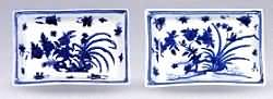 嘉靖一朝45年,官窑生产从未间断,据不完全统汁,产量可达60 多万件(不计民窑)。将近半个世纪的生产,形成了嘉靖官窑青花瓷器的独特风格。嘉靖朝的官窑青花小件瓷器的胎子坚致细密、胎轻体薄,大件瓷器坚致但较粗、胎体厚重;小件器的釉面肥润光亮,大器欠平整,釉色白中闪青或闪灰。嘉靖朝的青花瓷器主要用西域地区的钴料回青及江西产的石子青配合使用,描绘出色彩艳丽 闪紫的纹饰。由于回青料含铁量低,所绘纹饰没有黑色斑点,又由于含锰量高,纹饰浓艳泛紫。瓷器上常见松鹤、云鹤、仙鹿、八卦、灵芝等宇,及"壬"宇形云纹 和仙人乘槎等,龙呈猪形嘴,比目眼(双眼在一侧,像比目鱼,因名),发毛前冲,爪子呈风车状;寿星的脑门很大很高,像冬瓜;小孩的后脑勺很大,爱穿长袍大 褂,俗称"大头娃娃",也是此朝的特征。纹饰布局繁缛,没有层次。此时山水通景纹饰开始出现。 嘉靖朝青花器型种类很多,有盒、瓶、罐、杯等。大器多大罐、大缸、绣墩,大盘等。大器修胎不很规整,接口明显,有的夹扁或翘棱。盘、碗多有酱口,颜色比永乐时的深,塌底,圈足内收,施亮青釉。嘉靖时期 官窑款既有粗犷的,也有清秀的,但总的说写得比较规矩,"靖"字的偏旁"立"一般都写在"青"宇的上中部。有的在器口横排写款,更多的则在器底双圈或双框 内写六字款,有的砂底器只在写款的部位罩釉。 隆庆一朝仅存 6年,传世瓷器较少,官窑青花瓷更少,其总体凤格与嘉靖类似,惟大件作品少见。青花料仍用回青,呈色蓝中泛紫,纯正稳定。末署年款的青花瓷,很难与嘉靖和 万历朝的区别开来。有款的则多署"大明隆庆年造",也有写"制"字的。因隆庆时已出现的"官搭民烧"现象,刺激了民窑发展,故隆庆民窑青花中的精品,巳接 近官窑水平。 青花八宝碗 (一对) 明嘉靖 直径8·2厘米 侈口,圆腰不收,圈足,碗外绘莲花莉八吉祥纹。八吉祥是倪教常用的象征吉注的八件器物,有法纶、法螺、宝伞、白 盖、莲花、宝瓶、金鱼及盘肠,瓷器上常与莲花组成图案,始见于元,流行于明清,它是由西藏喇嘛教流传而来。因人们视它为吉祥之兆,所以广泛流行于瓷器和其 他工艺品上。 青花折枝花果纹四方罐 明嘉靖 高16·8厘米 唇口,短方颈,罐腹上部自肩而下呈弧形鼓出,下部收敛,四方足,与罐口大小一致,釉底画青花 "大明嘉靖年制"双框六字双行楷书款。颈饰回纹,肩部为如意云头间夹缨络纹,腹部主题纹饰为折枝花果及蝴蝶,足上饰莲瓣纹。胎质粗犷,釉肥厚泛青,接痕明 显,积釉处显亮绿色,是嘉靖典型之作。 青花花鸟长方盘 (一对) 明隆庆 长13星米 胎体坚致,釉色白中泛青,纹饰流畅,青花色泽浓艳,为典型的回青料,"隆庆年造"四字双行楷书青花款。 青花缠枝莲纹葫芦瓶 明嘉靖 高19·5厘米 胎壁厚重,葫芦形,谐音寓意"福禄";通体满绘缠枝莲纹,莲花盛开在多叶的缠枝上,寓意"寿意连绵"。□沿写"大明嘉靖年制"六字楷书横款。底有蟹爪纹。 |