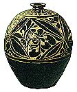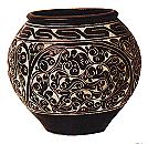 磁州窑:在磁州境内(今河北磁县观台镇、彭城镇一带), 故名。建于宋代,所烧器物纯供民间使用,品种繁多,如瓶、罐、盆、碗、缸、瓮等,以白地黑花(属釉下彩装饰)为主要特征。白地黑花保留了不少民间喜闻乐见 的纹饰,如马戏、孩童钓鱼、池塘赶鸭、蹴球等,题材丰富而清新,纹饰线条流畅豪放,黑白色彩对比强烈,发展了陶瓷的装饰艺术,当时深受北方地区人们喜爱,曾对南北方不少瓷窑产生很大影响。 宋 磁州窑白地黑花梅瓶 宋 磁州窑黑釉剔花瓶 宋 磁州窑刻花罐 故宫博物院藏 宋 磁州窑黑彩云雁纹瓷罐 金 磁州窑白釉黑花四系瓷壶 |