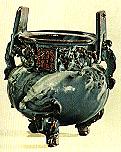 钧窑:在钧州境内(今河南禹县),故名。是宋代五大名窑之一。创烧于唐代,经历宋金至元代。境内有窑址近一百处,以小白峪历史最早,唐代已烧黑釉带斑点器物,时称"花瓷",对宋代紫红斑点装饰有直接影响。宋代首创釉 中加入适当铜金属,烧成玫瑰紫、海棠红等紫红色釉,美如晚霞。北宋后期,专为宫廷烧制供养植奇花异草用的各式花盆与盆托;钧台窑是宋代众多钧窑中最具代表 性之一,窑址发掘出土数以千计供宫廷陈设用的这类瓷器,器物底部各刻一个从一到十的数目字,数字越小,器物尺寸越大。绝大多数窑均烧钧窑器物,天蓝、月白 釉较多。一部分窑址还发现烧磁州窑白地黑花、三彩、红绿彩等品种,其中以扒村窑质量最好。