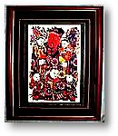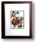 瓷刻:在上釉烧成的素色瓷器上,用钨钢刀或金钢石刀搂刻书、画的一种工艺品。制作过程是:先用刀尖刻出点线,再涂墨上蜡,即在瓷面上出现山水、花鸟等画面或各种书体的字迹,既保持了传统的书、画风格,又发挥了晶莹光洁的瓷面特色,收到相得益彰的效果,且经久不泯。 瓷刻年画系列