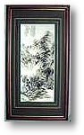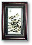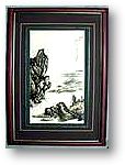 ##########NextPage########## 瓷刻:在上釉烧成的素色瓷器上,用钨钢刀或金钢石刀搂刻书、画的一种工艺品。制作过程是:先用刀尖刻出点线,再涂墨上蜡,即在瓷面上出现山水、花鸟等画面或各种书体的字迹,既保持了传统的书、画风格,又发挥了晶莹光洁的瓷面特色,收到相得益彰的效果,且经久不泯。 瓷刻山水系列