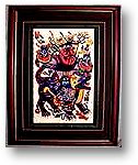 ##########NextPage########## 瓷刻:在上釉烧成的素色瓷器上,用钨钢刀或金钢石刀搂刻书、画的一种工艺品。制作过程是:先用刀尖刻出点线,再涂墨上蜡,即在瓷面上出现山水、花鸟等画面或各种书体的字迹,既保持了传统的书、画风格,又发挥了晶莹光洁的瓷面特色,收到相得益彰的效果,且经久不泯。 瓷刻唐卡系列