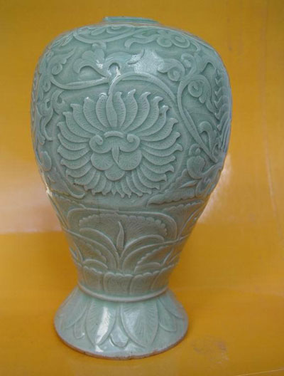 耀州窑创烧于唐代。窑址临近唐代都城长安。经历五代、北宋、金、元,到明代终结,共有800多年烧制瓷器的历史。《中国陶瓷史》一书高度评价了耀州窑的艺术成就,将其列为中国六大窑系之一,并确认耀州窑为宋代北方青瓷的代表。 唐代(公元618-907),耀州窑处于初创期。器物造型有仿金银器的迹象。器型有壶、瓶、罐、钵、碗、盘、灯、盏等,尽管多为生活用品,但造型特点仍然折射出唐代人那种典雅、大气、浑厚的审美气息。装饰技法以白釉点绿彩,青釉点褐彩,黑釉点白彩以及贴塑、压瓜 棱、划花等为主。釉质有黑釉、白釉、青釉、茶叶沫釉等品种;施釉大多都不到器物底部。胎质较粗,颗粒不匀;由于胎土含铁量高,在胎釉之间施化妆土以美化釉 面。这一时期用木柴为燃料,窑炉温度和气氛控制不够成熟,瓷器断面可见气孔和生烧现象;烧成器的胎色也变化较多,不够稳定。不过,耀州窑工艺精细的特点在 唐代已经较为明显了。表现在拉坯成形的优美,修坯的精致,釉面的光洁度,底足处理的考究等方面。 下图为唐代耀州黑釉执壶 唐代素胎点彩钵。这种装饰手法。目前所知。为耀州窑独刨。一直受到收藏界珍爱。 ##########NextPage########## 五代(公元907——960),耀州窑制瓷工艺跃上一个新的高 度。天青釉的创烧成功是耀州窑的一个非凡的贡献。造型仿金银器的特点极为突出,葵口、瓜棱等金银器常用成型手法普遍使用。装饰技艺借鉴了越窑的成熟工艺,显得更为丰富熟练,把佛教造像的浮雕艺术运用到瓷器上是耀州窑的一大发明,这种接近浅浮雕的剔花工艺的成功运用是这一期突出的成就。胎泥练制水平大为提 高,胎土细匀,器物胎体轻薄。胎泥主要分两种:一种是含铁量较高的黑色胎,胎釉间施化妆土,这种深色胎多制素器。另一种为白色或浅灰色胎,含铁量较低,不 施化妆土,这种白胎器多采用划花或剔花装饰,是耀州窑最为典雅华丽的杰作。工艺精细的优良传统在五代基本成熟。器物修足极为讲究;器物满釉裹足,用支钉或 托珠支烧;装烧也改唐代的叠烧法为一器一匣钵。采用木柴为燃料,窑温控制及还原气氛掌握较好,胎的瓷化度及釉的玻化度都比较高,釉面光洁玉润。窑址出土十 多块刻“官”字款的青瓷标本让研究者对其官方色彩增加更多的推测。 图为耀州五代白胎剔花瓶残部 目前所知。耀州这样造型的剔花瓶仅此一件存世 ##########NextPage########## 北宋(公元960——1127),耀州窑进入鼎盛期。瓷器的装饰 工艺成就突出。青瓷刻花犀利流畅,达到炉火纯青的境界。其刻花工艺被誉为众窑之冠。模印纹饰成为中后期主流装饰方法,印花纹样丰富多彩。后世诸窑流行的莲 溏鸳鸯、博古插花、婴戏花草等图案均已出现。青瓷以橄榄色透明釉为主,兼烧酱色釉,黑釉及黑釉酱斑等品种。青釉质地清彻,如水如冰。刻石于北宋元丰七年 (1084)的窑神庙德应侯碑这样评价:“叩其声,铿铿如也。视其色温温如也。”“巧如范金,精比琢玉。”瓷胎练制极为精良,瓷化度高,吸水率低,胎色呈 浅灰色,且较为稳定,已经有一套较为标准的制胎工艺流程。北宋早期开始,耀州窑改用煤作燃料。烧成温度较高,窑炉气氛控制极好。这一时期的造型多种多样,已知的器型有一千多种,是同时期各窑口中器型最为丰富的。 图为北宋刻花枕 ##########NextPage########## 金代(12世纪初到13世纪初),月白釉的烧制成功是耀州窑最后 的余辉。月白釉有明显仿玉石的效果。釉层厚如堆脂,釉面细腻玉润,光泽柔和。学术界依据考古发现,认为耀州月白釉瓷是金王朝宫廷用瓷。这一时期的器物造型 显现厚重圆浑的时代特点。黑釉酱斑和油滴等窑变釉较为发达。窑变的釉面光亮,发色艳丽。青釉瓷因扩大产量,窑炉体积增大,窑温和气氛不够稳定,质量开始下 降。釉色呈姜黄色,釉的透明度和温润感大不如前。金代后期到元代,产量激增,在同一匣钵内,器物内底刮釉以涩圈叠烧为主要装烧方法。耀州窑的青瓷工艺明显 衰落。 图为耀州金代月白釉刻花洗。 耀州金代黑釉酱斑盘 |