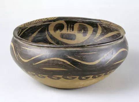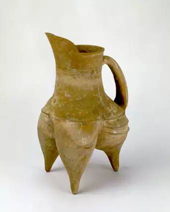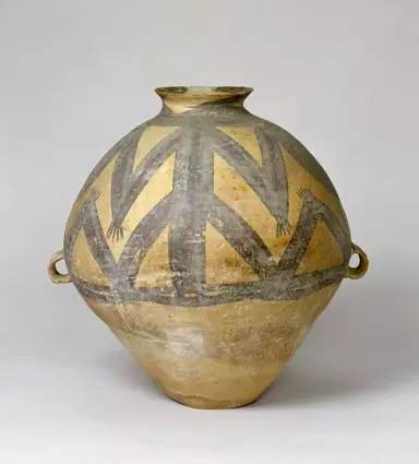 新石器时代 彩陶漩涡纹双耳罐,高37cm,口径10cm 罐小口,圆腹,腹侧安双环耳,平底。胎呈暗红色。肩及上腹部以宽肥的黑彩条带和细窄的锯齿状条带构成漩涡纹,利用弧线的起伏旋转表现河水奔腾向前的韵律感。这种将柔和的弧线和醒目的圆点相结合构成二方连续的装饰带,是马家窑文化的典型构图方式。 彩陶蛙纹双系罐,高42cm,口径13.1cm 罐泥质红陶,口外侈,薄唇,球形腹,小平底,腹部两侧有竖耳。于橙红色陶衣上绘黑彩变形蛙纹。彩绘线条流畅,富于变化,与造型协调一致。 此罐上的变形蛙纹是马家窑彩陶应用较为普遍的花纹之一。 彩陶钵,高9.6cm,口径21.3cm 钵敛口,折沿,鼓腹,腹以下渐敛,小平底。橙黄色泥质陶,表面打磨光滑。钵内、外及口沿均以黑彩描绘纹饰。钵内饰以底为中心的漩涡纹,外壁为波浪纹,口沿为三组菱形网格纹。此器造型饱满,图案线条流畅,是马家窑类型彩陶的典型器。 马家窑文化的突出特点是彩陶特别发达,而且可以分为马家窑、半山、马厂三个类型,分别代表三个发展时期。马家窑类型彩陶造型有壶、罐、瓶、钵、盆等,多为细泥橙黄色陶,器表打磨光滑,多以黑彩描绘条带纹、圆点纹、波纹、漩涡纹、方格纹、人面纹、蛙纹、舞蹈纹等,构图严谨,笔法娴熟。图案设计采用以点定位的方法,使画面充分展开,尽情变化,具有强烈的韵律感。 时至今日,马家窑文化彩陶上古老的母题仍不失其迷人的魅力,那流畅的线条所产生的韵律感仍带给我们以美的享受。 彩陶弦纹瓶,口径8cm,足径6.5cm,高21.5cm 瓶陶质,敞口,束颈,鼓腹,腹下渐收,平底。器表光滑,上腹部彩绘弦纹六周,纹饰简洁明快,朴素大方,有很强的装饰性。此类弦纹是马家窑文化中马家窑类型彩陶的常见纹饰。 彩陶盆,新石器时代仰韶文化半坡类型,高16.4cm,口径37.4cm 盆折沿,深直腹,圜底。泥质红陶。口沿及外腹部均以黑彩描绘纹饰,口沿上描绘以点定位的水波纹,腹部描绘两层三角形几何纹,两层纹饰中三角形的大小及形状相同,但方向相反。这种三角形纹饰可能是由鱼纹逐渐抽象演变而来。此彩陶盆的造型和纹饰具有新石器时代仰韶文化半坡类型的明显特征。 黑陶高柄杯,新石器时代,口径7cm,足径6cm,高15cm 杯敞口,束腰,高柄足外撇,平底。杯身有凸出的弦纹为饰,高柄中空,柄外壁镂三孔。因采用了轮制方法,器壁较薄,素面磨光,配以镂空等多种工艺手法,制作十分考究,是一件精致的饮酒用具。 黑陶单把杯,新石器时代,口径8cm,足径8cm,高12.5cm 杯呈筒形,腹间微收,平底,杯身一侧有扁形把,便于持拿。杯为轮制而成,杯身均匀地分布三道弦纹。 此杯具有龙山文化黑陶的典型特点,器表漆黑如墨,器壁薄如蛋壳,反映出当时制陶技术已达到较高的水平。 红陶鬹,高39cm,口径11.9cm 鬹胎为泥质红陶,冲天长流,细长颈,三个大袋足分裆而立,颈与后袋之间附一个麻花状鋬手,便于提拿。器物造型遒劲有力,似挺立之雄鸡。 鬹是龙山文化最具特色的器物种类之一。此鬹为龙山文化陶器中的精品。 红陶双耳罐,新石器时代,口径8cm,足径4.5cm,高12.2cm 罐泥质红陶,手制而成。敞口,束腰,折腹,平底,口沿至腹部有对称的单鋬耳,器身无纹饰。 齐家文化陶器多为素面,彩绘极少。此罐造型优美,设计巧妙,制作精致,具有实用功能。 |