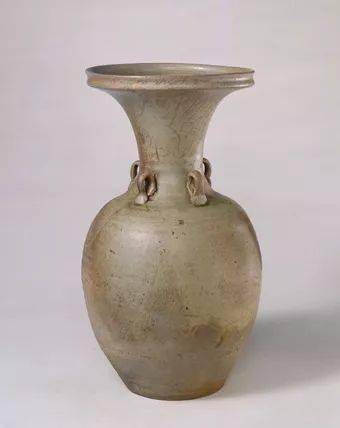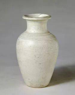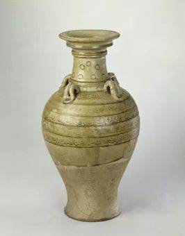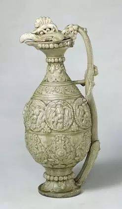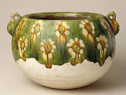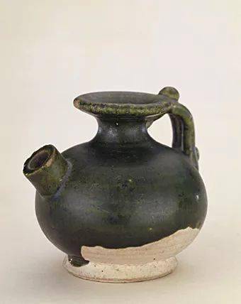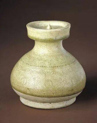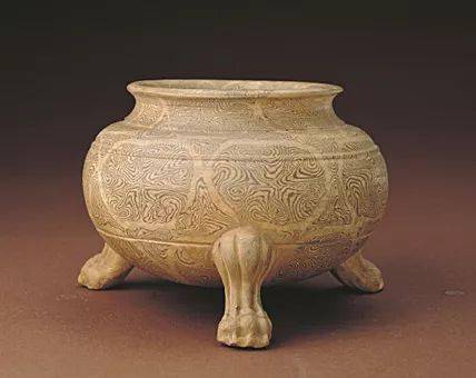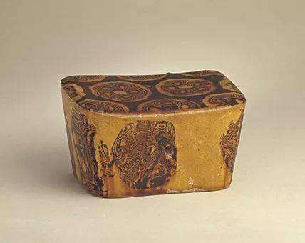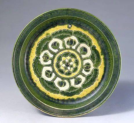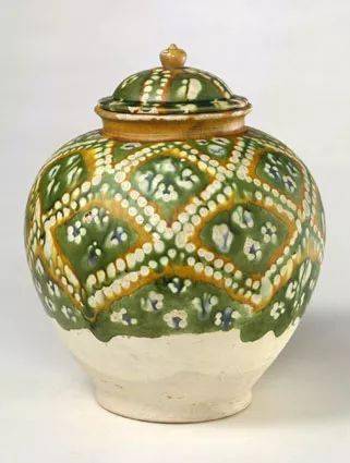 隋唐五代 青釉印花带盖唾壶 青釉印花带盖唾壶,通高14.2cm,口径8.4cm,足径10.6cm。 壶盘口外撇,短颈,溜肩,半腹下垂,腹下略收,宽圈足。盖卧槽,钮如蜡扦状。通身施淡青色玻璃质透明釉,施釉不及底,近足处露灰白色胎骨。肩部暗刻三角纹边饰一周,腹印团花、树叶及忍冬纹一周。 隋代青瓷继承南北朝青瓷的优良传统,釉色青绿而透明,釉面有细碎的片纹,玻璃质感极强。此唾壶造型敦厚,青釉明亮,所用印花技法为戳印,花纹简洁浅显而疏朗,具有鲜明的时代特征。 青釉兔钮莲瓣纹权 青釉兔钮莲瓣纹权,高12cm,底径12.7cm。 权平底,底心有一圆孔,中空,顶部饰一兔钮。器身薄施一层青釉,釉色泛黄,施釉不到底。外壁模印莲瓣纹一周,上为6组团花,间以条纹。 此权造型端庄,兔形钮栩栩如生,釉面玻璃质感强,开细碎片纹,模印之纹饰清晰,布局规整,线条流畅,富于艺术美感。此权为隋代青瓷器的典型之作。 白釉罐 白釉罐,高19.2cm,口径9.7cm,足径15.2cm。 罐唇口,无颈,溜肩,肩下垂直至足,平底无釉。胎骨呈白色,较为厚重。内外施白釉,外壁近足处釉不及底。釉薄而匀净,纯白无瑕,布满细碎开片。罐体造型饱满端庄,优雅而古朴。 隋代,白釉瓷器在继承北朝工艺技术的基础上,又有了长足的进步。从隋大业四年(608年)李静训墓出土的一批白釉瓷器看,较之北齐范粹墓出土的白瓷,釉质已有较大提高,全不见早期白瓷白中闪黄或闪青的痕迹,是代表隋代白瓷发展面貌的珍贵资料。 青釉划花莲瓣纹四系盘口瓶 青釉划花莲瓣纹四系盘口瓶,隋,高43cm,口径15cm,足径13.5cm。 瓶盘口,长颈,溜肩,肩部置四个由双股泥条制成的竖系,鼓腹,腹以下渐敛,近底处外撇。通体施青绿色釉,釉仅及腹下部,釉下施有洁白的化妆土,釉面开有片纹。釉下纹饰为划花和印花,颈、肩部均戳印圆圈纹,肩部有两道划花纹饰,上为覆莲瓣纹,下为忍冬纹,腹部三道划花纹饰,上下均为覆莲瓣纹,中为忍冬纹,每层纹饰间均以弦纹相隔。由于考古工作者在安徽淮南窑遗址曾发现这种四系盘口瓶标本,在安徽地区隋代墓葬中也曾出土这类四系盘口瓶,由此推断,这件四系盘口瓶应为安徽淮南窑制品。 淮南窑黄釉高足盘 淮南窑黄釉高足盘,隋,高12.5cm,口径27.5cm,足径14.5cm。 此盘直口微外撇,盘心坦平,有印花装饰,并有五个支钉痕,下承以空心喇叭状高足。通体内外施黄釉,但外壁仅施半截釉。 高足盘是南北方瓷窑普遍烧制的器形。从考古资料看,高足盘最早见于北朝,北齐天统三年(567年)的墓葬中即出土有青釉高足盘。隋代这种器物比较流行,在隋代的绘画、壁画上都可见到。目前发现隋代烧制高足盘的瓷窑有河北的贾壁窑,河南的安阳窑、巩义窑,安徽的淮南窑,湖南的湘阴窑,四川的邛窑等。主要烧制青釉高足盘,釉色淡青而透明,有些可见胎上的黑点杂质。河南的巩义窑在唐代还烧制三彩高足盘。 此件高足盘釉色偏黄,从其胎釉特征看,应属安徽淮南窑制品. 越窑青釉瓜棱壶 越窑青釉瓜棱壶,唐,高20.4cm,口径8.9cm,足径9.4cm。 壶撇口,束颈,溜肩,长圆腹,圈足。通体呈四瓣瓜棱形,肩部一侧置短流,另一侧置曲柄,与流、柄成十字形的颈、肩之间置双系。通体内外及圈足内均施青釉。此壶造型圆润饱满,釉质润泽,为晚唐越窑的代表作品。 巩义窑绞胎枕 巩义窑绞胎枕,唐,高8cm,长12.5cm,宽8.8cm。 此枕造型小巧,呈长方形,枕面前低后高,前侧有一通气孔。枕面及枕侧面以白、褐两色胎土绞出的五瓣团花纹样数组装饰,外罩黄釉。 经与窑址采集的标本相互印证可以断定,此绞胎枕属于河南巩义窑产品。巩义窑绞胎器大体可分为两种:一种是全绞胎,即以深、浅两色胎泥相互绞合在一起再成型;另一种是贴面绞胎,即先将两种不同颜色的胎泥绞合在一起,绞出不同的纹理,再切成薄片,用胎泥将薄片粘贴到器物上。这种做法一是为了节省绞胎原料,二是为便于做出各种图案花纹。 巩义窑绞胎三足罐 巩义窑绞胎三足罐,唐,高11cm,口径10.7cm,足径15.8cm。 罐口外卷,圆腹,下承以三兽足。此罐通体绞胎,以两种颜色胎泥绞出木理纹样,并以团花形式表现,是绞胎器物中难得的佳作。 三足罐是河南巩义窑常见的器形,造型模仿唐代金银器,以三彩数量较多,此外还有白釉、黑釉、蓝釉等品种。 三彩盖罐 三彩盖罐,通高23.5cm,口径12.8cm,足径12.8cm。 罐口微撇,短颈丰肩,肩下渐收至底,平底圈足。罐盖尖顶,出边,直口,盖与罐口不吻合,略小于罐口。罐口施黄釉,罐身施釉不到底,以绿釉为地,衬以白点及黄道组成的菱花图案,盖面以绿釉为地,衬以白点及黄道组成的四瓣纹饰。 唐三彩陶器是我国古代陶瓷史上的一枝奇葩,是在汉代低温铅釉陶的基础上进一步发展的成果。此件三彩盖罐是唐三彩的代表作,釉彩鲜明亮丽,纹饰仿唐代流行的蜡缬染织物的图案纹样。尤其是此罐器型完整,更为难得。 三彩刻花三足盘 三彩刻花三足盘,高6cm,口径27.7cm,足距17cm。 盘口为板沿式,平底,下承3足。通体以绿釉为地,盘心刻一团花,外环荷花、花蕾及荷叶纹,施以黄、绿、白三色。底无釉。 此盘造型规整,盘心图案以刻花方法填彩而成,画面呈现凹凸状,立体感强。由于采用了素烧工艺,胎体致密,釉色以绿彩为主,色调清新淡雅,在三彩盘中较为少见,堪称唐三彩器中的精品。 三彩双系罐 三彩双系罐,高12.5cm,口径13.5cm,底径6.9cm。 罐呈扁圆形,口内敛,平底,口外两侧各有一系。器内施黄釉,外壁以绿釉
