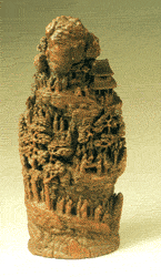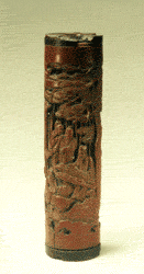 孔府是孔子嫡长子孙、历代衍圣公的衙署,也是孔子嫡孙的住宅。称为“衍圣公府”,又名“至圣府”。历代封建王朝在推崇孔子的同时,也泽及孔子的后人,对孔 氏嫡孙优渥有加,并一再赐爵受封,自汉高祖刘邦始封孔子九代孙孔腾为奉祀君,专主孔子祀事。以后历代屡有加封,使孔氏家族成为中国历史上世系清楚、宗支可 考、世袭罔替、历时最久的贵族世家。 孔氏宗族特殊的历史文化地位,特别是“尊祖守制,诗礼传家”的传统所形成的家族文化,就具有了特殊性,使之积累了大量关于孔子和孔氏家族弥足珍贵的历史物化资料。现将孔府珍藏的几件竹雕工艺品简介如下: 竹林七贤笔筒,高14.7厘米,口径13厘米,底径13厘米。笔筒厚1.7厘米。截取圆形竹茎雕琢而成,底内凹。整个笔筒画面构思巧妙,有静有动。青松蓊 郁,翠竹茂盛,山石耸立,隐现在松、竹之间。共雕饰13人,运用透雕、浮雕技法,描绘了一幅文人雅士们无欲无求、恬静宜人的生活画面。是人们熟悉的“竹林 七贤图”,所雕人物高冠大裳,或坐或站,或弹琴,或聆听,或促膝交谈,或行走观景。书僮皆束发短衣,趋走侍候,形象生动。布局巧妙,人物遍布笔筒周身,却 毫无杂乱之感;刀法精湛,人物神态各具特性,悠然自得,栩栩如生;景物雕刻,工整精微,一丝不苟。尤以镂空竹枝,更显竹林之幽远,景色之宜人。刻画生动,风格细腻娴熟。 明清两代的绘画、陶瓷、雕塑常用“竹林七贤”、“对弈”、“听松”之类反映文人雅士生活情趣的题材,进行创作,抒发自己的感情。 ##########NextPage########## 竹根雕“万寿图”摆件,明代,通高39厘米,底长椭圆形,长15厘米,宽12.5厘米。根据竹根的天然形态,高浮雕或镂空雕树木、山崖、楼阁、人物等。山 路崎岖、逶迤,整个山景分三层刻划表现,树木盘根错节,树根、树干、树叶雕刻十分精细。作品构思巧妙,雕刻人物107人,可辨认出老翁99人,书僮8人。沿山道盘旋而上,或观画,或对弈,或抚琴,或攀谈,或登山,人物形态各异,须发毕现,栩栩如生。 雕刻山石层峦叠嶂,山势缓缓而上。青松挺拔、茂密,依山势远近、高低各不同。山顶处依山而建一座庭院,两层楼台,院中青松环绕,是供人休憩娱乐之所。刻画 人物众多,形态生动逼真,人与景自然融合在一起。刀法细腻,工构图,善用景物之遮掩压叠,分远近,生层次。从而使宾主分,虚实明,朴质可见竹丝之素地。 ##########NextPage########## 竹根雕“刘海戏金蟾”摆件,明代,高22厘米、宽16厘米。色泽较深。立体圆雕,所雕人物袒胸露乳,光头大耳,脑后长发披垂于肩,慈眉善目,满面笑容,鼻 翼微张,双唇微启,憨态可掬。右手合掌立于胸前,左手撑抚于蟾蜍头部,赤足坐骑在三足蟾上,蟾蜍张口瞪目,屈身,三足立撑,似不堪重负,把仙人戏蟾形象表 达得淋漓尽致。此竹雕塑刀法纯熟,衣褶线条简洁流畅,人物形象准确生动,反映了竹雕塑者高超的技艺水平。 刘海戏蟾的故事实际是子虚乌有的。清瞿灏《通俗篇》卷一云:“刘元英号海蟾子……海蟾二字号,今俗呼刘海,更言刘海戏蟾,外桀谬之甚。”清初褚人汧《坚瓠 五集》卷一云:“海蟾姓刘名喆,勃海人,十六登甲科,仕金,五十至相位,朝退,有二异人坐道旁,延入谈修道之术。……喆遂悟纳印,入终南山学道而仙。…… 今画蓬头跣足嬉笑之人,持三足蟾异之,曰此刘海戏蟾图也,直以刘海为名,世无有知其名者。”由此说明刘海戏蟾是因刘海蟾这个名字讹传所致,实际并无刘海戏 蟾之事。明清两代雕刻题材多儒释道人物及各种历史传说故事,其中刘海戏蟾也是广为雕刻艺人们所常用的题材。北京故宫博物院藏有一件封锡禄竹雕刘海仙人,山 东省博物馆藏有刘海戏蟾竹雕,只是雕刻构思略有不同,所雕三足蟾蜍或趴于人物脑后,或趴于人物手臂上,构成人蟾嬉逗的形象,颇有异曲同工之妙。 ##########NextPage########## 竹雕“竹林七贤”香筒,明,直径5.5厘米、高21厘米。竹茎雕。器作细长镂空圆筒状。香筒口及底各有一紫檀圆形带榫堵塞。形制小巧俊俏,雕工玲珑剔透。 褚礼堂《竹刻脞语》称:“截竹为筒,圆径一寸或七八分,长七八寸者,用檀木作底盖,以铜作胆,刻山水人物,地镂空,置名香于内焚之,名曰‘香筒’。”因为香筒是专为熏香而作,故又名香熏。 采用透雕、浮雕、平刻等技法,刻绘了“竹林七贤”的故事,一老者双手抚琴,神情凝重。身后一片竹林,幽邃莫测。“竹林七贤”的那种“目送飞鸿,手挥五弦,俯仰自得,游心太玄”的人生情怀,于此很传神地表现了出来。人物形态各异,栩栩如生,布局颇具匠心,雕刻技艺高超。如:画面上苍松之虬枝蚌叶,青竹之修干 深节,巨石之罅隙凹陷以及人物衣着之纹路皱折等,都刻画得细致入微,清晰可见。线条流畅圆润,尤其是人物身后的竹林,更显幽深。 我国古代竹根、竹筒雕刻艺术,始于魏晋时期,《南齐书》中记载:齐高帝(479~482年)曾赐给明僧绍一根竹根雕如意;北周文学家庾信有“山杯捧竹根” 的诗名。这里的竹根如意和竹根杯,皆为竹根雕刻品。现传世最早的唐代竹雕实物是收藏于日本京都正仓院的唐代竹乐器“八尺”,其上用留青法浅雕塑仕女、树 木、花草、禽蝶等图案,唐风甚浓。今所见宋代竹雕刻实物,有考古发掘出土的“残荷洗”等物,其雕刻亦精致,唐宋时代的竹雕,虽已具备浅刻、深雕和透雕等各 种技法,但仍处于初创阶段。 明中期以后,江南地区一些文人开始涉足竹