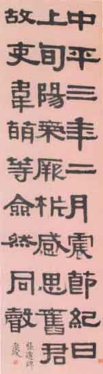 王铎——《临古法帖》 《临古法帖》王铎 ##########NextPage########## 傅山——《读傅镫》 傅山《读傅镫》 ##########NextPage########## 朱耷——《行楷自书诗册页》 《行楷自书诗册页》 ##########NextPage########## 宋曹 行草轴 ##########NextPage########## 郑簠 隶书立轴 ##########NextPage########## 刘墉—— 《临米芾诗帖》 ##########NextPage########## 王文治——《待月之作》 ##########NextPage########## 金农广陵旅舍之作 ##########NextPage########## 郑燮《李白长干行一首》 ##########NextPage########## 李鱓《五言联》 纸本 行书 天津市艺术博物馆 ##########NextPage########## 高凤翰 《七绝》 纸本 行书 138.5x47.9cm? 上海博物馆藏 ##########NextPage########## 汪士慎《十三银鑿落歌卷》(部分) 纸本 行草书 114x15cm? 杨州博物馆藏 ##########NextPage########## 《五言诗》 黄慎 ##########NextPage########## 邓石如——《语摘》 ##########NextPage########## 邓石如——《唐诗集句》 ##########NextPage########## 伊秉绶——《节临张迁碑》 ##########NextPage########## 何绍基——论书语 《论书语》 ##########NextPage########## 吴熙载——《五言诗》 《五言诗》 ##########NextPage########## 杨沂孙——《七言联》 《七言联》 ##########NextPage########## 张裕钊——《七言诗》 《七言诗》 ##########NextPage########## 赵之谦——行书对联 行书对联 ##########NextPage########## 赵之谦——《节录史游急就篇》 《节录史游急就篇》 ##########NextPage########## 杨守敬——孟浩然诗 孟浩然诗 杨守敬 纸本 164×35.5cm 北京故宫博物院藏 ##########NextPage########## 吴昌硕——《五言联》 《五言联》--吴昌硕 ##########NextPage########## 沈曾植——《七律》 《七律》 ##########NextPage########## 康有为——《五言联》 《五言联》 ——康有为 |