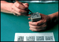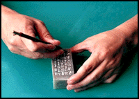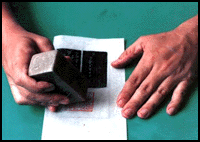 章法的筹布:亦即打稿,与作品的好坏息 息相关。有人说:治印之难,不难于刻,而难于章法。 印石的整平:印石在裁割时有倾斜,或上 蜡磨光时,印面留有蜡,这时要用砂纸整平,以利上石刻制。 上石:通常上石有二 种方法:一为把印稿 用毛笔反写在印面刻 制;二为用耐水纸反 拓上石。 刻制与修整:依据印 文选用合适的刀法来 刻制,刀法可分切刀 与冲刀二种。 边栏的处理:印文工整,边栏要工整;如 印文斑剥,边栏也要写意自然。作边之法 有:刻、作、磨等法。 边款:刻印之后,在印章左边刻上作者字 号、刻制年月等,谓之边款或具款。 边款的拓制:拓款的方法与古铜器的拓法 相似。拓款的方法有湿拓、干拓、油墨拓 等。 印泥的使用:钤印时,左手持印泥盒右手将印面轻轻击打在印泥上蘸均,切忌把印面注印泥上挤压。 钤印:将蘸好印泥的印章,对准应钤盖部 位轻轻落下,用力镇 压。 钤毕:印章用过后,应用棉花擦拭干净,收存起来备用,并小心勿使碰撞。 上石法 转印法:此法最普遍,以转印纸上墨沾水转印印文,俟后以墨笔补稿。 脱炭法:此法系利用影印稿 ( 或雷射打印稿) 以酮液脱炭,脱炭时以指轻压,将有较佳效果。 纸背法:将印稿反贴于窗或灯箱,见反字即描绘印文。 照镜法:利用镜面反射产生反字,以上印文于印面上。 橡皮法:将橡皮材面上书写印文,再反印至印面上集成。 双色法:利用双色笔将印文直接于印面上修改之,日本人常用。 临印法:此法最真,匠气较少,系将印谱印文直接临于印面,其效果浑然自在。 |
