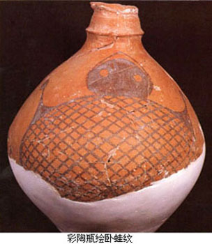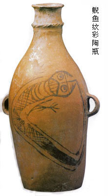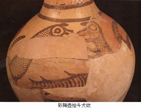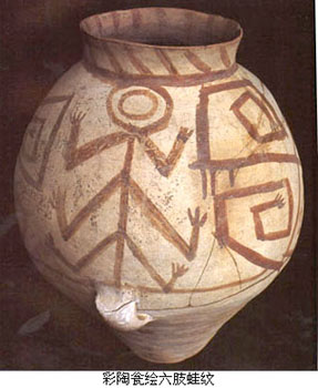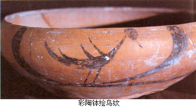 另外如临潼姜寨彩陶中的蛙和鱼纹,造型质扑,用笔稚拙,别有一种艺术魅力。可以说,在新石器时代的彩陶画上,已经体现出中国古代绘画传统的某些基本特色,如线描的表现方法和对笔墨效果的体会和运用等。 ![]() 【线刻画】 这是以硬度较高的工具在石器、骨器及陶器 上刻划的阴刻图像。虽然它们的制作看起来具有工艺或雕刻的性质,但从图像本身来看仍不失为具有独立性的绘画图像。浙江余姚河姆渡遗址出土的鸟纹骨匕,其中 心部位刻两组对称的双鸟,为有冠、勾喙、大眼、蹼足、修尾的水禽,姿态生动,特点鲜明,具有写实与装饰相结合的意趣。另外同在河姆渡遗址出土的猪纹陶钵、双凤朝阳纹牙刻蝶形器、稻穗植物纹陶盆等,都显示出同样的特色,其中那件猪纹陶钵尤为有趣,猪的外形基本写实,但猪身上的毫毛却被画成圆圈纹和花叶纹,这 种艺术加工手法在后来的民间绘画中成为一种富有民族特色的传统。 壁画与地画 壁画与建筑物的存在紧密相连。目前仅知有两处史前壁画 的遗迹。辽宁凌源县牛河梁红山文化遗址的女神庙建筑遗存中发现有壁画残块,是中国迄今所知最古老的壁画遗迹。它是在压平的壁面上,绘上赭红间黄白交错的三 角纹几何图案和用赭红色画成勾连纹图案。另一处壁画遗迹是在宁夏固原店河村齐家文化遗址的一座房屋残垣的白灰面上,曾发现用红彩描绘的几何纹。这些壁画残 迹反映出史前人们已懂得利用彩绘图案装饰建筑壁面,虽然还不是主题性的绘画,但可以视为中国壁画传统最古远的源头。 地画其实难以构成一个绘画种类,这里介绍的是一个特殊的绘画遗迹。1982年在发掘清理甘肃秦安大地湾仰韶文化晚期遗址时,发现在一处长方形房址的白灰地面上,有以炭黑颜色绘成的图画。画面绘有两个人物(一说为三人),有披发,身后似有尾饰(一说为手握棍棒);图下方有一长方形框,框内有两物,似为两只昆虫,也有说是两只动物。另外一个与地面装饰有关的特例是在河南濮阳两水坡仰韶文化早期墓葬里发现的用蚌壳摆砌 出来的、分列于死者尸骨两旁的龙虎形象,是目前所见最早的龙的形象。这是对墓葬进行装饰的最早实例,必然蕴含有很深的用意。 |