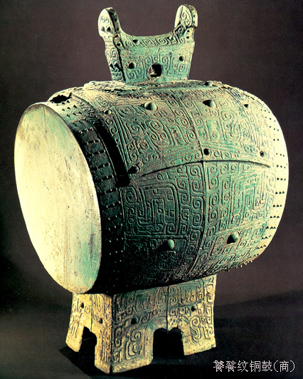 第二章 夏商周绘画 公元前21世纪前后,一支活跃在黄河中游地区(今河南西部和山西南部一带)、名为夏的部落联盟推翻了传统的首领推选制度,确定了世袭王位制,标志着中国历史上第一个国家王朝的出现。到了公元前16世纪,人们对于国王夏桀的暴虐统治十分痛恨,这时东方的一个古老部落在商汤领导下乘机起兵,夏朝灭亡。 商代原是以今河南郑州及其附近为活动中心,后屡次迁都,至盘庚时迁都于今天的河南安阳,即后来周朝人称为殷的地方。自盘庚迁殷以后的商代又称殷代或殷 商。商代出现完整的文字体系甲骨文和金文,尊天事鬼的祭祀活动名目繁多,仪式隆重,青铜文化在整个精神生活中占据极其重要的位置。 周原先是活动于陕甘一带的古老农业部落。公元前1027年,周武王起兵灭商,建立周朝,自此至公元前770年,史称西周;前770年,周平王把国都从镐京(今陕西长安县)迁至洛邑(今河南洛阳),史称东周。东周时代又以前476年为界,前期称春秋时代,后期称战国时代,至公元前221年秦朝统一中国为止。 综合起来看,青铜艺术集工艺绘画、雕塑、绘画以及书法等绘画种类的特征、手法和成就于一身,成为夏、商、周三代艺术成就最集中、最辉煌的代表。 青铜器纹饰 中国青铜器发源于黄河流域,在新石器晚期马家窑文化、龙山文化和齐家文化的遗址都发现了铜器制品。可以肯定的是,新石器晚期文化已经为青铜 器的发展奠定了稳固的基础,如青铜器的形制、纹饰甚至铭文等都可以在新石器晚期的石器、陶器中发现它们的渊源。而青铜器纹饰则是继彩陶艺术之后又一重要图 像资料。商周青铜器某些纹饰的定名和分类至今未有完全统一的意见,其题材可以大致分为三大类。 一、动物类纹饰 〖兽面纹〗 旧称饕餮纹。其基本特征为双目圆睁,阔口隆鼻,头上多有一对变化多端的犄角,或更有獠牙利爪;多数兽面纹的两旁还有对称展开的兽体身躯。这 种纹样实际上是把牛、羊、鹿、虎、豹、熊等各种动物头部的正面形象以夸张和象征的手法综合起来,往往难以判定为何种动物形象,故统称兽面纹。 “饕餮”之名最早见于《左传》文公十八年,谓饕餮是神人缙云氏之子,贪吃贪财而无厌足。《吕氏春秋·先识览》更有言:“周鼎著饕餮,有首无身,食人未 咽,害及其身,以言报更也。”“报更”即“报偿”之意,此谓周鼎上铸这些饕餮图像是为了告戒人们不要贪吃无厌。宋人吕大临《考古图》即据此把这类图象定名 为饕餮纹。现代学者大多认为此名不甚科学,故有许多人改称兽面纹,也有人认为不妨暂时沿用旧名。 ![]() 兽面纹最早在新石器时代良渚文化玉器和山东龙山文化的 玉器上已有出现,商周青铜器上的兽面纹明显地受其影响。在二里头文化青铜器上已有兽面纹出现,特别盛行于商代中晚期和西周早期,常饰于器物的腹部、颈下等 重要部位作为主题纹样。西周中期以后逐渐衰落,一般只施于器物的耳、足部。 〖龙纹〗 龙是中国上古时代最具神秘色彩的幻想动物,能潜于水、飞于天,被视为水神、天象之神,故此成为在商周青铜器及其他器物上被广泛施用、流行时间也很长的装饰题材。 龙的形象特征主要是有角的兽头和屈曲的躯体,又可以按传统的分类法分为夔纹、顾龙纹、蟠龙纹、小团龙纹、交龙纹、曲龙纹等各种类型。 所谓夔纹,是宋代以来金石学家对于有一足、二足或省略足部的龙形侧面图象的称谓,本不科学,今暂沿用。商晚期和西周早期的夔纹多作一角一足、尾部上卷形。 另外值得注意的是,交龙纹中有一种类型是两条小龙相互交绕,组成一个纹饰单元,并多次重复以构成带状或块状装饰面,这种纹饰通常称为“蟠螭纹”,流行于春秋中晚期和战国早期。 〖蛇〗 在古代神话中,蛇与龙同属,也是吉祥之物;但由于蛇是现实动物,常会伤人,故有时又作为被神灵降服的邪物。商至西周时代青铜器的蛇纹多作长条 形,头部呈三角形,有一对突出的圆眼,体态弯曲,有鳞节。此类蛇纹过去曾被误称为蚕纹。另外,由两条或多条小蛇相互缠绕、构成一个纹饰单元,并重复出现以 构成装饰面的,通常称为“蟠虺纹”。“虺”即指小蛇。蟠虺纹与上述蟠螭纹形式接近,也是流行于春秋中晚期和战国早期。但明显的区别在于蟠虺纹的蛇头没有上 下弯卷的长唇。在东周青铜器及其他器物上,蛇有时被视为恶物而被操蛇之神或镇墓兽践踏或啖食,含有辟邪之意。 〖凤鸟〗 包括凤纹和鸟纹,也有学者以鸟纹统称之。在古代,凤鸟均为吉祥之物,凤有可象征风神。凤鸟纹出现于殷代中期,至西周早期和中期作为主题纹饰而大量出现与广泛流行。西周晚期逐渐衰落,春秋晚期重又出现的某些鸟纹则表现出较明显的地区性特征。 凤纹的特征是长尾有冠,可分为多齿冠凤纹、长冠凤纹、花冠凤纹等几种类型。鸟纹又可分为弯角鸟纹、长颈鹿角鸟纹和变形鸟纹等。 另外还有一种较特殊的鸱枭纹,鸱枭即猫头鹰,作为主题纹饰仅见于殷代晚期。 〖虎纹〗 侧面形象的虎纹多数较为写实,突出的是巨睛张口、利爪卷尾、躯体有斑纹等形象特征。同时,有许多虎纹作张口噬人状,许多学者认为这是寓有以虎的威猛驱魔辟邪的含义。 ![]() 〖象纹〗 象在商周时代的中原地区并不罕见,殷墟遗址 有象骨、象牙及象牙制品,墓葬中也有玉象出土;青铜器物中的象尊造型写实、制造精美,表明商代人对象的