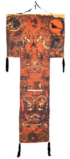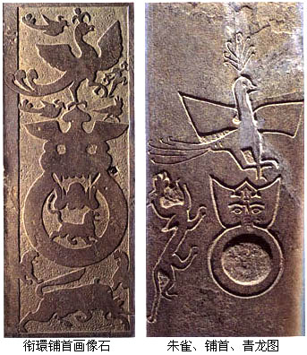 秦汉绘画艺术逐渐摆脱附属于器物之上的地位,取得独立发展。但年代久远,战乱频繁,绢帛之画,早已荡然无存。今日所见秦汉绘画实物仅得属于墓葬性质的画像石、画像砖、壁画和帛画数种。 【画像石】 汉画像石是为丧葬礼俗服务的一种功能艺术,主要用于装饰墓室、享祠和墓阙。画像石的创作形式虽是以刀代笔,但总体艺术效果,近于绘画而远于石刻。于山东苍山画像石墓发现的铭文,当时人即称画像石为“画”而不称雕刻。 过去一般将“鲍宅山凤凰画像”当作有记年的汉画像石最早例证,因其有“元凤”二字而著录为西汉昭帝元凤年间(前80~前75年)。经实地考证,此石应为宋元以后之物,后经碑帖商人故弄玄虚泡制而出。实则从考古所见,汉画像石最早出现年代可追溯至汉武帝时期(公元前140~公元前88年)。 ![]() 汉武帝时期画像石内容简单,多为仿效生活场景的图像,其功能可能是随葬品的代替、扩展或延伸。随着画像石影响不断扩大,逐渐为社会上层人们所接受,其内容和艺术形式更加丰富多彩。反映生活题材的图像日益丰富,神鬼迷信、谶纬思想和伦理道德内容也被接纳和表现出来。