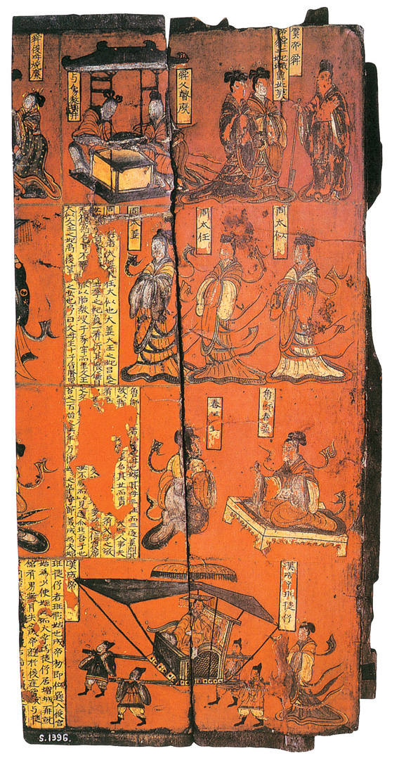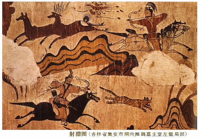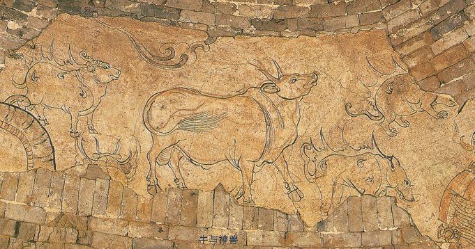 木板漆画也是目前发现的北朝绘画的重要种类。山西大同北 魏中期司马金龙墓出土木板漆画多块,内容为古贤、烈女、孝子以及其他有劝诫寓意的道德故事。人物以墨线勾描,某些部分涂色。线描工细流畅,与顾恺之“春蚕 吐丝”的画风十分接近,其他如构图、形象、形象、衣饰也与《女史箴图》、《列女仁智图》多有相似,反映了南北朝艺术交流、影响的史实。宁夏固原北魏墓中曾 出土一件描金彩绘漆棺。漆棺制作年代在北魏太和年间,即北魏推行汉化政策期间。在漆棺画上,可以见出草原文化与中原文化并而未合、汇而未融的时代气息。画 中人物皆着鲜卑装,画面笼罩着浓厚的鲜卑色彩,但中原文化的影响亦有所体现。如漆棺盖上的主题纹饰是常见于汉代绘画中的东王公和西王母。棺画中的孝子像也 一律鲜卑装,这种形象的孝子像,在中国艺术史上仅此一例。 漆棺上画有孝子,并不意味着墓主已服膺以儒学为代表的中原文化。汉末《孝 经》已被附会为能消灾辟邪,南北朝时,除用《孝经》外,还兼用道经和佛经随葬,表明死者三教兼习,以保佑冥途平安。因此有学者认为此墓的孝子像可能只是迎 合时尚的装点殡葬之物。固原漆画从一个侧面反映了北魏贵族中反对汉化的势力的思想倾向。孝文迁洛后,不少鲜卑贵族雅爱本族风尚,对革变新风,多有不满。从 中可见孝文改革所遇阻力何其顽强。 【墓室壁画】 现存魏晋时期墓室壁画主要分布在边远地区,如东北的辽宁、吉林,西北的新疆、甘 肃,西南的云南等地。这些墓室壁画在题材内容上既有承袭东汉时期以表现墓主生前生活为主的特点,同时又更富于日常生活的生动描绘,有些也显示出明显的地方 特色;在艺术风格上,主要延续东汉晚期墓室壁画生动豪放、稚拙有趣的画风。 辽宁辽阳地区至今已发现有多处曹魏西晋时期的墓室壁画。这些墓室均为石室墓,直接于石壁上绘有表现墓主生前生活的图画,如宴饮、家居、庖厨、车马出行、门卒等,亦有云气天象、仙禽等。形象生动。技法多样,以勾 线涂彩为主,也有单纯勾线或大笔涂彩,总体风格是简朴生动,奔放粗犷。 此外,辽阳地区还发现多处十六国时期的墓室壁画。其中于袁台子发现的十六国时期壁画墓室壁画以题材多样、内容丰富、艺术水平较高而闻名。如画中的妇女高髻朱笄,发饰华丽;四灵气势劲健,技法纯熟;残存的狩猎画面上,骑士弯弓欲射,群兽奔突。 辽宁地区的墓室壁画对于后来的高句丽墓室壁画有很大影响。 高句丽是生活于中国东北边境浑江和鸭绿江流域的一个古老民族,公元前1世纪建立高句丽国,至3~4世纪时国力强盛,版图南达朝鲜半岛中部,北有辽东半岛大部分。前期(3~427年)建都于吉林集安,后期迁都朝鲜平壤,至668年为唐朝所灭。高句丽文化深受中原文化影响,绘画创作以发现于集安和平壤地区的墓室壁画成就最高。 ![]() 集安地区的墓室壁画有二十多处,描绘墓主生前生活、风俗、动物鸟兽、山水植物、四灵飞仙、祥瑞天象等内容。前期(约当西晋、十六国时期)人物衣饰仍有本民族特色,风格以勾线平涂为主,简朴稚趣,可见内地魏晋墓室壁画的影响。中期(相当北朝前期)出现崇尚佛教内容,技法渐趋成熟。至后期(约当北朝后期)明显表现出汉民族文化已占主导地位,佛教题材也更为流行,技法精致,色彩金碧辉煌,表现出崇尚华丽的审美风格。 西北地区的魏晋十六国时期墓室壁画主要发现于甘肃嘉峪关、酒泉、敦煌,新疆吐鲁番盆地的阿斯塔那、哈拉和卓等地。 甘肃嘉峪关魏晋墓遗存砖画600多幅,题材广泛,有描给墓主生前宴饮、乐舞、博戏有及庖厨内容,还有描绘各项生产劳动的场面,多达200多幅。“牛耕 ”、“扬场”等图,记录了当时劳动。技法上信笔挥洒,奔放,用色以赭石与红色为主,热烈明快,构成砖画朴实粗犷、简练的艺术风格。 甘肃酒泉丁家闸五号墓(十六国时期)的 大幅壁画题材丰富,构思巧妙,描绘出天上、人间、地下三界的万千景象。构图布局疏密得当。人物描绘生动细腻,运笔依对象不同而粗细多变,设色简明鲜丽。壁 画题材、风格表现出与中原地区汉代墓室壁画以及同期东北地区墓室的一致性,表明该地实为文化交流繁盛之处。另外,可以看出此处壁画的艺术风格对于敦煌莫高 窟北朝壁画有着直接影响。 南北朝时期墓室壁画较魏晋时代有很大发展,例如利用墓道壁画绘制大幅主题性图画;许多壁画规模宏大、场面 壮观;细致写实与严谨华丽的艺术风格,以及高度成熟、精湛的技艺,取得惊人的艺术成就。此期墓室壁画主要有河南洛阳北魏元义墓、河北磁县东魏茹茹公主墓、山西太原北齐娄睿墓、山东济南北齐道贵墓、陕西咸阳张湾北周墓、宁夏固原北周李贤墓等,南朝的彩绘壁画则仅见于河南邓县的一例。其中以北齐娄睿墓壁画最足 代表北朝墓室壁画的最高水平。 娄睿墓墓主娄睿为北齐显贵外戚。墓内现存壁画共有71幅,约共200多平方米,为目前所见北朝墓室壁画中规模最大者。墓道两壁分上、中、下三层绘仪卫出行、归来图,天井、甬道、墓室前壁分别绘神兽、门吏等,墓室内绘墓主生活情景,墓顶绘天象、生肖、四灵、仙人等。 ![]() 在构图上,巨大的画幅上各部分布局得当,既有独立又有 前后呼应,首尾衔接,成功地交织出一个个充满变化与流动氛围的宏大场面。众多的人物形象准确地描绘出各种不