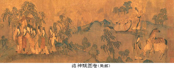 第四章 魏晋南北朝绘画 此期也称“三国两晋南北朝”。三国时代自公元220年开始,魏、蜀、吴三国鼎立,社会暂得局部安定,经济生产也渐有恢复和发展。公元265年,司马氏在攻灭蜀国后篡魏,自立晋朝,仍都洛阳,史称西晋。公元280年,晋灭吴国,结束三国分争局面,统一全国。 西晋是一个变动频仍、内乱迭兴的时代,于公元316年灭亡。随之而来的又是南北大分裂。南方为东晋王朝(317~420年),北方则为五胡十六国(304~439年)。 南方政权在兵火中不断交替,历经宋(420~479年)、齐(479~502年)、梁(502~557年)、陈(557~589年)四朝,史称南朝。历史上又将先后于建康(今江苏南京)建都的东吴、东晋、宋、齐、梁、陈合称“六朝”。 在北方,拓跋氏崛起于山西北部,于公元386年建立北魏王朝。公元439年北魏攻灭北凉,结束北方十六国的割据局面,统一北方。北魏于公元534年分裂为东魏(534~550年)和西魏(535~557年)。 其后东魏为北齐(550~577年)取代,西魏为北周(557~581年)取代。北周于公元577年灭北齐,统一北方。公元581年,杨坚篡位,建立隋朝。589年,隋灭南朝陈,结束南北朝分裂局面,重新统一中国。 西晋“永嘉之乱”后,黄河流域的汉族人民大批流徙到长江流域,而留在黄河流域的汉人则与匈奴、羯、氐、羌、鲜卑、乌桓等异族一起,时而从关东(函谷关以东)被迁到关中(函谷关以西),时而从关中被迁到关东。无论人数之众,次数之多,均为历史上罕见。这种民族大迁徙是当时民族矛盾的结果,使各族人民遭受了无穷的苦难。 从社会思想领域来看,玄学的兴起,佛教的迅速传播,道教的基本形成,是此期的重大变化。汉末社会的动乱和政治秩序的崩溃,士族名流既感世事无可为,只好 退入个人私期求中,于是谈玄之风渐兴。玄学的兴盛,对中国哲学思想的发展有极为深远的影响。两汉之际传入中国的佛教,亦于此时乘虚而入,到了南北朝,佛法 盛极一时,一跃而成为时代的主要精神。当时上至君王将相,下至黎民百姓,无不崇信佛法,希企得到解释与慰籍。印度僧人来华络绎不绝,梵文佛经也陆续译成汉 文,各种佛教教派也开始在中国出现。南北各地均出现大量修建佛寺以及绘绘制佛窟壁画的热潮,尤以北方地区的佛教石窟汇集了佛教艺术的无数珍品。 ![]() 著名画家及其作品 中国第一批确有历史记载而且主要是 以绘画成就著称的画家出现在魏晋时代,他们是曹不兴、卫协、顾恺之等人。但他们并非孤标独立的几位,在他们身后是一群专业画家,人数众多,专长不一,各臻 其能;此外,文人士夫者流甚至帝王也多善书画。而所有这些第一批画家的发源,均在于居于社会下层的民间画家和朝廷的画匠,在于他们所创作、绘制的各种类别 的绘画,如石窟壁画、墓室壁画、画像砖、漆画等。这就是中国古典绘画(狭义的,指出自史有记载的著名画家的,并被纳入中国文人传统之中的)的发源基础。可惜年代久远,加上人为的毁灭(如梁元帝江陵焚书),这批画家的原作早已荡然无存,纵有传世,亦为后世摹本。 三国时期画家以曹不兴最为著名。曹不兴(一作弗兴),东吴人,擅长人物,佛像和龙,其作品号称“东吴八绝”之一。他曾根据中亚僧人带来的“西国佛像”绘制佛像,并驰名于当时,故在画史上又有“佛画之祖”的称誉。曹不兴的作品在南齐时已只剩下藏于秘阁的一龙首。 两晋时期的画家人数众多,往往各有所长,如西晋卫协、张墨善画人物、佛像;荀勖擅人物、肖像;东晋的戴逵父子兼擅绘画、雕塑,尤精于佛像雕刻;顾恺之工人物、肖像、山水等。此期最为著名的画家是卫协、顾恺之和戴逵等人。 卫协,西晋人,承曹不兴衣钵,擅长人物、佛像,线条巧密,风格精雅,饶有笔力和气韵,被谢赫评为“古画皆略,至协始精。……凌跨群雄,旷代绝笔。”由此 可见,绘画发展到西晋,以卫协为代表的绘画最高水平的面貌是摆脱了过去粗略的作风,而趋于精细工密而又兼有壮气和气韵的画风。卫协对六朝重气韵的画风有直 接而深远的影响,其作品至唐代尚有流传,备受唐人推重。 顾恺之(约346~407年),字长康,小字虎头,东晋时人,出身世族。具有多方面的艺术才能,有“三绝”(画绝、才绝、痴绝)之称。 顾恺之在艺术创作的突出成就表现在他极为重视人物内在的思想感情与性格风度,可以成功地刻划出人物的心理特征和个性。他为建康瓦棺寺作的壁画《维摩诘 像》,人物容貌清羸,神态忘言,正是一代穷心玄理、心远神宁的名士的深刻写照。他画人物尤重描绘眼神,认为眼精是传神成功与否的关键所在。据说他“画人尝 数年不点目睛,人问其故,答曰:‘四体妍蚩,本无关于妙处,传神写照,正在阿堵之中。’”(《历代名画记·顾恺之传》)另一例子是,他画嵇康诗意,深深感到“手挥五弦易,目送归鸿难”,这是对人物画艺术的奥秘的深刻感悟。 在注重眼神刻画的同时,他还善于捕捉一些生动的细节或典型的环境,以便更好地揭示或衬托出人物的独特个性。如他为谢鲲画像,衬以山岩为背景,并谓“此子 宜置丘壑中”。又如他画裴楷像,“颊上益三毛,而神明殊胜”。一般将“颊上益三毛”之“毛”直解为毛发。亦有学者认为“毛”者,当指笔毫,即谓于画像的颊 上添三笔皱纹。 顾恺之的绘画风格和技巧特点,古人有不少论述。张彦远《历代名画记》中评其风格为“紧劲连绵,循环超忽”;元代汤垕 《画鉴》形容其用笔如“春蚕吐丝”、“春云浮