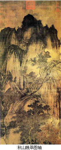 荆浩著有《笔法记》,此书首创山水画“六要”说:气、韵、思、景、笔、墨。由于谢赫的“六法”说已不适应水墨山水画日益拓展的需要,故增“六法”所缺之 “墨”,又将“应物象形”与“随类赋彩”概括为“景”,又将“经营位置”提练为“思”,又去不合山水画以写生为主的“传移模写”。 此外又提出“神妙奇巧”、“笔有四势”(筋、肉、骨、气)、“有形之病”和“无形之病”、“物象之源”(对树木、山水的审美体验)等理论范畴,并评价了唐代山水画家李思训、王维、项容等人的艺术造诣,深刻而广泛地阐明了他的山水画艺术思想,亦为品评山水画制定了要则,在中国画学著作中具重要地位。 荆浩的山水画艺术思想与兴起于晚唐的新儒家追究宇宙万物之“理”与“性”的理论很相似,其要旨乃是要把握宇宙并参悟它深沉博大与复杂多变的奥秘,而非仅 仅限于模仿自然。这一观照自然的过程包括对自然的观察、冥想和参悟。正是这种自然观决定了中国写实性山水图像没有采用焦点透视这种科学性空间表现的方法(西方线形透视法在18世纪才被中国画家采用),而是放观于散点透视,通过山石的纵深层次,造成真实可感的空气效果。 荆浩在绘画实践和绘画理论两方面都予后世以深远影响。中国古代绘画,自五代以后以山水居首,而水墨山水又居山水画的主流地位,这与荆浩的影响密不可分。 关仝,生卒年不详。长安(西安)人。学荆浩而有出蓝之誉,笔法简劲而气势雄壮,后人合称他们为“荆、关”。在传为关仝的三件作品中,《秋山晚翠图轴》可能最体现关仝的本来画风。画上树石形态映证了画史上对他画风的记载“石体坚凝,杂木丰茂”(郭若虚《图画见闻志》),但是否真迹难以确定。《关山行旅图轴》画寒山枯木,山店行旅,勾笔粗壮雄肆,画树有干无枝,也与画史评语相符。《山溪待渡图轴》的皴法已高度程式化,或非 真迹。关仝入宋后被誉为“百代标程”的三家之一,他所创造的雄壮深远的北方全景式山水体格,世称“关家山水”。他和其师荆浩在中国山水画史上所取得的重大 突破,具有里程碑式的意义。 ![]() ![]() 表现江南山水的画法也于此期开始成熟。但入宋以后,这种画风并不受当时决定绘画风尚的北方贵族文人所欣赏。宋人对这种画风的代表人物董源、巨然记载甚为简略。 董源,生卒年不详。字叔达,钟陵(今南昌)人。于南唐任职“后苑副使”。人称董北苑。据成书于北宋时的《图画见闻志》、《宣和画谱》等书所载,董源本善人物画,而山水则有青绿和水墨二体。 北宋初年,董源的作品尚未为世所重。直到北宋中叶沈括《梦溪笔谈》才给以注意,称其“多作江南平远风景,不为奇峭之笔”,又称其“用笔甚草草,近视之几 不类物象,远视则景物粲然,幽情远思,如睹异境”。米芾对董源的宣扬更为著力。在《画史》中称其画“平淡天真”,“峰峦出没,云雾显晦,不装巧趣,皆得天 真……溪桥、渔浦、洲渚掩映,一片江南也。”不过,沈、米二人的宣扬显然并未引起广泛重视,因为接下来的南宋时期,董源依旧寂寂无闻。 董源在沉寂近三百年后,到了元代突然声名鹊起。有元一代师学董源画法的画家很多,这又成为另一次山水画变革的诱因之一。到了明末董其昌倡“南北宗”说,董源更被捧为南宗的实际创始人。元代人的选择代表了一种不同于宋代人的绘画欣赏趣味,而他们并未试图反映出董源绘画的全貌。因此,今天所看到的董源的作品 是被一批具有很强的文化与政治动机的后世画家所过滤和筛选过的。极有可能的是,今天所知的只是被元代和明末文人画家塑造出来的董源的形象。 传为董源的作品大致有两种画法:一是作淡设色点子皴,点簇丛树,如《潇湘图卷》画山树墨色清淡,草草点簇,皴染浑厚,江山平远。属于此类画法的尚有《夏 景山口待渡图卷》、《重林寒汀图卷》、《夏山图卷》等。另一画法为作长披麻皴,高树枝干浑厚,或双钩夹叶,或大青色渲染,如《溪山行旅图卷》和《龙宿郊民 图卷》。 ![]() 上述作品所画山形,多为江南一带的丘陵,大都为坡陀起伏,土山戴石,少有陡峭挺拔之状。这与荆浩、关仝所表现的气势雄伟的北方山水正好形成鲜明对比,而且也符合沈括、米芾的评价。但《宣和画谱》又称“大抵元(即董源)所画山水,下笔雄伟,有崭绝峥嵘之势,重峦绝壁,使人观而壮之”,则董源画山水可能另有雄伟一格。 置于董源名下的作品尚有《溪岸图轴》,真伪虽有争论,但大致可定为一件五代与北宋初之间的作品。 董源所创造的水墨山水画新体格,当时得到释巨然的追随,后世遂以“董巨”并称。 释巨然,生卒年不详。江宁(今南京)人。师董源,入宋后居汴梁。画史上称“善为轻岚气象,山川高旷之景,但林木非其所长”(郭若虚《图画见闻志》)。传世作品中以《秋山问道图轴》最体现其面貌,此画绢本水墨,用长披皴,山林高深,草木华滋,清淡秀润。但有学者认为画中程式化的披麻皴和苔点,是元代才发 展出的,因此该图只能是元代的作品。至于传为巨然的另外几件作品《万壑松风图轴》、《层崖丛树图轴》、《谿山林渚图轴》等,其真伪也是见仁见智。 与其师董源一样,巨然在画史上的影响,要等到崇尚抒情写意的元代才表现出来。 除荆、关、董、巨等大家外,五代山水画家尚有赵幹、卫贤、郭忠恕等人。 赵幹,生卒年不详,江