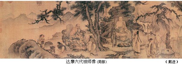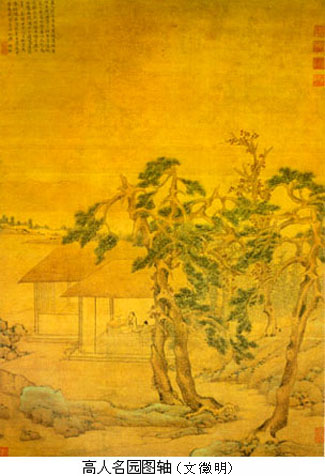 第九章 明代绘画 明朝采取严格的中央集权制度,施政方针并不着重于扶持先进的经济,从而增益全国财富,而是通过赋税不均等政策保护落后的经济,以均衡的姿态维持王朝的安全。 这种维护落后的农业经济而对商业及金融不加发展的做法,正是中国在世界范围由先进的汉唐演变为落后的明清的主要原因。 明代八股取士,程朱理学成为正统的官方哲学。但产生于宋代的心学到了明代中叶进入高潮。经过王阳明的创造发挥,这种思想已经形成一个完整的体系。心学不 象理学那样强调“格物致知”,而是提出“心即宇宙,宇宙即心”,认为最完备彻底的“理”源自人之内心,而与读书识理义了无关涉。作为对正统的反叛,许多人 从明代心学中找到灵感和力量。 唐中叶以前北方的财富,到明代已完全转移到南方。明代中叶,江南一带的城市经济空前繁荣,苏州、杭 州、松江与嘉兴等地,以纺织业为支柱的城市经济急遽发展,由此导致了晚明江南一带思想极大解放、人才辈出、学术空前繁荣的盛况。受心学影响的狂禅之风兴 盛,对当时的文艺创作产生巨大影响。绘画领域的南北分宗正是由于禅宗思想流行的社会背景中产生而出的。明代绘画,尤其是在绘画领域,其发展经历了若干个阶 段,而且每个阶段居于正统地位的画派,其势力的转换又有着明显的标志。明代中后期绘画上的风气上的不断演变和流派上的此起彼伏,与当时文学上的时尚变化不 居和派别先后代兴的情况,有一定的联系,都属于同一文化思潮的产物。 明代前期画家及作品 时间大致为洪武至天顺年间(1368~1465年)。明初的山水画尚存元季遗绪,纯然元风。活动于元末明初的王履(1332~?)感于时人徒摹元人,挺身为马夏一派辩护。他游历华山,作《华山图》四十余幅,并道出“吾师心,心师目,目师华山”的见解。 但马夏画风在明初的复兴,则得力于皇室的推崇。明代恢复画院制度,画家重得进身之阶。明初诸帝御下酷严,画家于怵警之下,务以规矩迎合上意,元季放逸之画顿息,而继承南宋兼师北宋的院体画风便在画院中占据了主导地位。 明代前期绘画基本上有三种势力,一是宫廷院体画,二是江浙一带的浙派,三是继承元画的文人画,以前二者为重要。院体与浙派皆师从南宋马远、夏圭画风。因 而浙派与院体画风基本一致,而且浙派画家同时多为院体画家,两者合而为一。明代院画与宋代院画在画面效果上的主要区别是,宋人下笔凝重,工整严谨,而明人 则于谨严中略带写意,风格更为豪放粗野。 戴进是明初院体山水画家中一个重要的代表人物。戴进(1388~1462年),字文进,号静庵,钱塘(今杭州)人。善山水、人物。师学李唐、马远。宣德中曾入内廷,不久放归。戴进虽不容于画院,但追随他画风的人很多,故他在职业画家中影响很大。又因戴进是浙江人,后人 遂将艺术上追随戴进画风的画家群体称作“浙派”,并称戴进为浙派的领袖。戴进善以简练的构图造成宏大的画面气氛,画中还常点缀人物。《三顾茅庐》、《风雨 归舟》等传世作品较之南宋院画造境更为丰富,也较元画更多生气与真趣。 ![]() 花鸟画沿袭宋代院体深入观察、真实反映的传统。院画家以边景昭、孙龙最为杰出。 边景昭,生卒年不详。字文进,福建沙县人。永乐时供奉内廷。学黄家画法而稍变,体格工丽端严,被誉为明人院体工笔花鸟画的鼻祖。 孙龙(一作隆),字廷振,毗陵(今江苏武进)人,远学徐崇嗣、近师释法常,擅长没骨画,彩色渲染,生趣盎然。传世作品有《花鸟草虫册页》等。 宫廷画家因常惨遭无端的罗织与迫害,故易于招惹事非的人物画远不及山水花鸟兴盛。题材也局限于借古喻今、歌颂圣王贤相的历史故事,如戴进的《三顾茅庐》、刘俊的《雪夜访普》。此外帝后肖像与行乐图也很流行。 继承元人画风的明初画家有徐贲、赵原、谢缙、王绂等人。徐、赵二人皆为文士,为明太祖诛杀。谢、王笔墨精妙,得元人画意。王的墨竹,清秀飘逸,对明代墨竹影响极为深远。属于这一系统的画家尚有杜琼、刘珏、夏昶、姚绶等人。