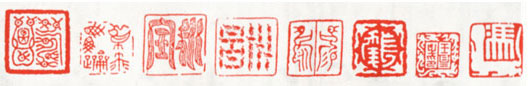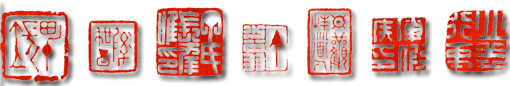 31.印文散布法 中国印章艺术,一语一印、一句一印或一名一印的模式比较普遍。但有些印章却不是这样,人名印分成姓和名两印,可上下或左右使用,而一语或一句则 可分成数印,印文文字互相分散,各有边栏,各有一方天地,相互之间拼合在一起,才能成为一个整体。入印文字各自为政,印文单元之间互不关联,如附图中“士 之玺”;王睿章的“艳艳半池云绉影”,印文虽在同一方寸之中,但入印文字亦是各自为政,互不关联,在印面上相当疏散与孤立。以上这类章法布局称为印文散布 法。印文散布法印章贵在散而不乱、散中有聚、散得有情趣。明清时代的文彭、何震、丁敬、梁襄、吴晋以及印坛上被称为云间派的王睿章、王玉如,被称为如皋派 的许容等篆刻艺术家,尤擅印文散布法。这类形式也许因具有“散”的特点,有悖秦汉印法,故颇招微词,曾被批评为“格调低下”、“流于俗气”、“不谙篆法 ”、“疏密不称”等等。“如皋”、“云间”等印人以“散布”为主体格调,一见便知是他们的印章,这正是成功之处。但不知何故,“云间”、“如皋”派作者很 少,传人几乎断绝,实为可惜。 32.印文补字法 补字法,顾名思义,即一方印章缺了一个字,把这个字补上去,叫补字法。按一般常理,刻制印章前,内容、字体以及形式都事先应考虑好,无论是金属 或以石材为印章材料,动刀前都应反书上石。当然熟能生巧,也有不书而治的,尤其是在当今印坛上,不书而动刀的印人为数很多。但他们之所以胸有成竹,是因为 在自己心目中早以“先书”了多遍,或者在纸上早以设计满意了,石上才不书,故一般不可能缺字。但有两种情况值得关注:其一、古人刻的是金属材料,刻好后发 现少了一个字,金属要重磨不太容易,有就用补字的形式将缺字补上;其二,有意识地补字,即在印面上将主要文字都刻好,有意缺一个字并有意留一块空地,把字 补上去。这种补字印能看到匠痕。如附图中后汉私印“马适平印”,“马适平”先刻,而“印”字属后补。在篆刻艺术中,遇重复字,或借用上一字的偏旁,都用横 或竖的两点来表示,这实际上也是属补字范畴。只不过是补字的方法和形式不同罢了。如汉印“御史大夫”,古时篆文“大”与“夫”通用,故在印中用两点表示补 字“夫”。程远的“懒拙生”印,“懒”字中的“束”字系有意用补字法处理,故它的大小、粗细、位置和其他印文不同,一看便知补去的。但这种补字法斧痕明 显,说明是篆刻者事先设计好的一种布局。补字,可补一个、两个、三个或多个以上,其位置可在印的任何部位。补字法可以说是出于追求别趣,追求与众不同的形 象与风貌,是一种尚趣行为。王羲之、颜真卿的天下第一、第二行书,就有涂画、修养、补字形式,一些当代书家也仿效这种形式创作书法作品。而印章的补字比书 法要难得多,故在当今印坛尚未风行。但它确实是一种章法形式,探究发展它,应是艺术的需要。 33.印文美术法 20世纪90年代,有关书法报刊、杂志,屡次刊文呼吁篆刻要警惕“美术化”倾向。所谓“篆刻美术化”,就是指印文结 体高度变化,线条“狂怪”扭曲,使入印文字像绘画一样以美术的形象出现。窃以为任何事情不能过度,过了“度”就不佳了,无疑这种呼吁是必要的。但不能因此 矫枉过正,作为理性的印文美术法不能一概否定与摒弃。有些印章的印文,美术化一下比不美术化一下要强,那么未尝不可用“印文美术化”方法来设计布局。印人 们在设计印文时,总想把印文设计得有趣、别致一些,不愿把辞典上的篆文与印谱上的形态照搬到自己的印章上来,这也许就是“印文美术化”的最初原因与出发 点。其实印文美术化不是今人所创造,秦汉古玺就有之,如附图中汉印“寿昌”即是。把印文设计成鸟虫形,篆刻上称为鸟虫篆,这类印章理当属于印文美术化。附 图中文士英的“鸢飞鱼跃”一印,似真的鸢在飞、鱼在跃;叶梅的“永宝”,用水草叶构造成印文;汪芬的“世昌”,用许多金龟巧置而成;商承祚的“锡永”,用 栩栩如生、鸣叫不已的小鸟组成印文。这类形式繁多、内容丰富、多姿多彩用美术法刻制的印章不胜枚举,虽然受到诸多贬意微词,但作为一种新颖别致的形式,总 有人会喜爱。艺术是让人欣赏的,只要有人喜爱,就应当欢迎它的存在。因此,从某种意义上讲,治印不必怕“美术化倾向”,有意境、有趣味的艺术,不仅会被人 认识与接受,而且会被继承与发展。艺苑的春天应是百花齐放的。 34.印文饰灵法 早在春秋战国时期就流行一种没有文字的图形印,前人曾称之为肖形印。这种印题材十分广泛,有宫阙、歌舞伎乐、车马出 行、百戏、弄蛇、骑射、博兽、力田、乘龙、骑龙等等,皆栩栩如生,非常有趣。而表示祥瑞的图形,如龙虎、鸾凤、朱雀、蝙蝠、鹤、龟、兔等则称为“灵”。青 龙、白虎、朱雀、玄武又专称“四灵”。古代的艺术家在刻印时,将印文与“四灵”有机结合,浑然一体,制成饰灵印章。所谓“有机结合”,就是将印文作为主 体,端庄大方,平正亮丽地布置设计在印中主要部位,然后在印文周围饰以灵形,使印文更为突出鲜明,更富有艺术性。“灵”有头有尾,甚至有目有舌,它在全印 中的顾盼、呼应特别生动强烈,视觉上更明了直接。这类形式的印章起于春秋,盛于战国、两汉,至汉末、六朝以后渐趋衰落。到明清时,文人印人又开始重视
