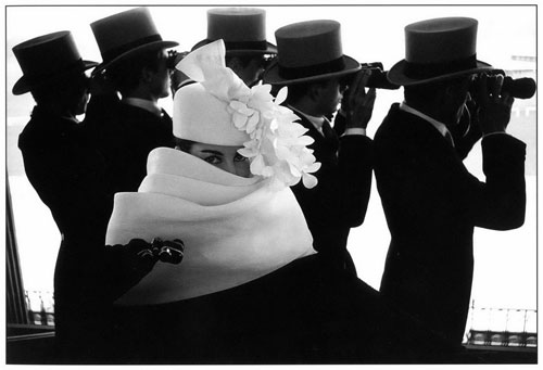 霍瓦特也是最早使用35mm相机进行纪实报道时装摄影的实践者之一,从而创造了一种更为写实的风格样式影响了英国、法国以及以后的美国时装摄影界。那些拍摄于大街上的画面融合了现实主义与人工技巧的模式,让他获得了成功。 1932年,他成为“国际新闻摄影”的自由摄影师,1938年,他的展览在第一国际摄影博览会上展出,以后并有许多重要的展出,作品也为私人收藏。 1953年,他开始为美国的图片代理商“黑星”(BlackStar Stock)工作,3年以后安顿于巴黎,以后他又加入了国际图片代理机构玛格南图片社(Magnum Photos)。他的拍摄范围很广泛,从新闻摄影到时装摄影,经常出现在《巴黎竞赛》、《生活》以及《时尚》和最著名的《哈泼市场》等刊物上。 1990年,他开始对数码技术产生兴趣,并且为一本童话书制作了精彩的数码插图。随后他又出版了专业的数码技术书籍。直至今天,他还在推出各种回顾集和新的画册,让他80岁的高龄焕发出异样的光彩。 在他的作品中,不管是时尚的还是纪实的,不管是委派的拍摄任务,还是自发的即兴创作,不管是系列作品,还是单幅影像,都表现出这位摄影家一生不断探求的心路历程,尤其是具有强烈感官诱惑的空间,曾经迷惑了无数的观众。 其中有一幅霍瓦特的代表作(如图1所示):裹着白纱的模特儿置身于观看赛马的绅士们背后,就如同一片漂浮在黑色背景上的神秘花瓣,以强烈的对比讲述了时尚的故事。