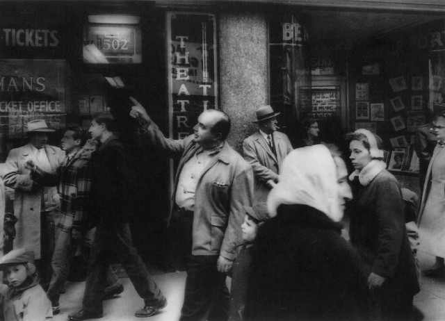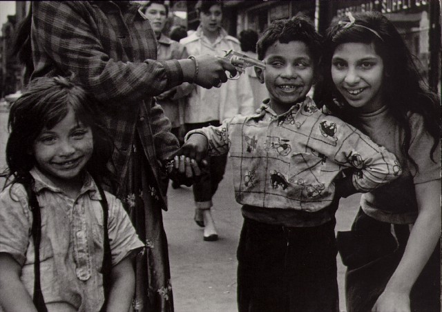 克莱因似乎从来没有为自己拍摄的画面颗粒太粗、成像发虚、构图不正、取景不全而担心过,相反,他在貌似这一切传统的教条中大刀阔斧地前进,为当时已达颠峰似无进展的纪实摄影开辟了一条新路。