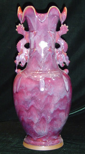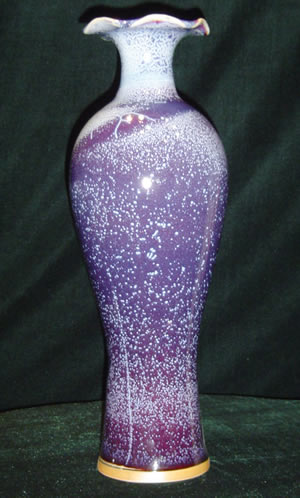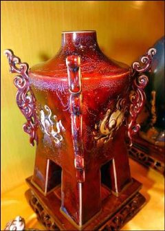 钧瓷起源于河南省禹州市神垕镇,那里地处山区自然资源丰富,有 “ 南山煤,西山釉,东山瓷土处处有” 之传说。据实践,生产钧瓷如果离开这些条件,在任何国家都不会成功。 钧窑是我国宋代五大名窑之一,与汝、官、哥、定诸窑并驾齐驱。钧瓷造型端庄,窑变美妙,色彩艳丽,五彩缤纷,又为诸窑之冠。 钧瓷的名贵在于其独特的窑变釉色,其釉色是自然形成,非人工描绘,每一件钧瓷的釉色都是唯一的,独一无二的,即 “ 钧瓷无双 ” ,且釉透,釉活,胎 质精纯,坚实细腻。叩之声园润悦耳,清脆动听;观之形端庄优美,古朴典雅,它的釉变色五彩缤纷,璀璨夺目,浑然天成,构成一幅幅神奇的图画,如寒鸦归林,夕阳残照,高山云雾,峡谷飞瀑,伯牙抚琴等等。这些釉变画,千变万化,意味无穷,具有千古耐看的魅力,名人曾用 “ 出窑一幅元人画,落叶寒林返暮 鸦 ”“ 雨过天晴泛红霞,夕阳紫翠忽成岚 ”“ 峡谷飞瀑菟丝缕,窑变奇景天外天 ” 等来形容钧瓷窑变之妙,民间有 “ 钧与玉比,钧比玉美,似玉非 玉胜似玉 ” 、 “ 黄金有价钧无价 ” ,国外更有 “ 雅堂无钧瓷,不可自夸富 ” 、 “ 纵有家财万贯,不如钧瓷一片 ” 之说。 ##########NextPage########## 钧窑创烧于唐,兴盛于宋,复烧于金元,延至明清仍继续仿制,历经千年而盛烧不衰,形成了一个庞大的钧窑系。 迄今为止,在禹州境内已发现北宋钧窑遗址多达 40 处,尤以神垕镇大刘山下最为集 中。禹州现存最早的《钧州志》中说: “ 瓷窑在州西大刘山下 ” 。在禹州市神垕镇下白峪村和苌庄乡等地,先后出土黑、褐釉高温窑变花瓷,被陶瓷学家称 为 “ 唐钧 ” ,它是宋代钧瓷的先声。宋 “ 靖康之变 ” ( 1126 年)后,宋室南迁,官钧窑停烧,钧瓷一时受挫。到金、元时代,钧瓷有了新 的发展,各地争相仿制,风靡一时,钧窑播火全国。元末明初,因战乱和灾荒,钧窑生产渐衰。明、清时期,制瓷中心南移,北方诸名窑衰退,钧窑也基本停烧。清 朝晚期,钧瓷复苏。到光绪三十年( 1904 年),神垕镇烧制钧瓷者已有 10 余家。民国年间,因战乱、灾荒频繁,钧瓷生产举步维艰。至民国三十一年 ( 1942 年)后,因大旱和政局混乱,艺人外流,钧瓷生产趋于停产状态。 钧瓷的烧制是一种复杂的高难技术,还原程度很难控制;加 上过去由于使用的是松木窑,窑温难以达到均衡,从而影响到钧瓷釉彩的成色,在烧制过程中有70%的产品会报废掉,而其中的上品则更为罕见,再加上至今已有 1300多年历史的钧瓷,自古就有 “ 黄金有价钧无价 ” 的尊贵名声,唐玄宗曾立令 “ 钧不随葬 ” ;宋徽宗时又成为御用珍品,诰封 “ 神钧宝 瓷 ” ,每年钦定生产36件,禁止民间收藏,所以现在墓葬出土的钧瓷文物也甚为稀少。目前世界著名的博物馆虽有收藏,为数也寥寥无几。 ##########NextPage########## 钧窑是我国宋代五大名窑之一,与汝、官、哥、定诸窑并驾齐驱。钧瓷造型端庄,窑变美妙,色彩艳丽,五彩缤纷,又为诸窑之冠。 钧瓷的名贵在于其独特的窑变釉色,其釉色是自然形成,非人工描绘,每一件钧瓷的釉色都是唯一的,独一无二的,即 “ 钧瓷无双 ” ,且釉透,釉活,胎 质精纯,坚实细腻。叩之声园润悦耳,清脆动听;观之形端庄优美,古朴典雅,它的釉变色五彩缤纷,璀璨夺目,浑然天成,构成一幅幅神奇的图画,如寒鸦归林,夕阳残照,高山云雾,峡谷飞瀑,伯牙抚琴等等。这些釉变画,千变万化,意味无穷,具有千古耐看的魅力,名人曾用 “ 出窑一幅元人画,落叶寒林返暮 鸦 ”“ 雨过天晴泛红霞,夕阳紫翠忽成岚 ”“ 峡谷飞瀑菟丝缕,窑变奇景天外天 ” 等来形容钧瓷窑变之妙,民间有 “ 钧与玉比,钧比玉美,似玉非 玉胜似玉 ” 、 “ 黄金有价钧无价 ” ,国外更有 “ 雅堂无钧瓷,不可自夸富 ” 、 “ 纵有家财万贯,不如钧瓷一片 ” 之说。 ##########NextPage########## 钧窑是我国宋代五大名窑之一,与汝、官、哥、定诸窑并驾齐驱。钧瓷造型端庄,窑变美妙,色彩艳丽,五彩缤纷,又为诸窑之冠。 钧瓷的名贵在于其独特的窑变釉色,其釉色是自然形成,非人工描绘,每一件钧瓷的釉色都是唯一的,独一无二的,即 “ 钧瓷无双 ” ,且釉透,釉活,胎 质精纯,坚实细腻。叩之声园润悦耳,清脆动听;观之形端庄优美,古朴典雅,它的釉变色五彩缤纷,璀璨夺目,浑然天成,构成一幅幅神奇的图画,如寒鸦归林,夕阳残照,高山云雾,峡谷飞瀑,伯牙抚琴等等。这些釉变画,千变万化,意味无穷,具有千古耐看的魅力,名人曾用 “ 出窑一幅元人画,落叶寒林返暮 鸦 ”“ 雨过天晴泛红霞,夕阳紫翠忽成岚 ”“ 峡谷飞瀑菟丝缕,窑变奇景天外天 ” 等来形容钧瓷窑变之妙,民间有 “ 钧与玉比,钧比玉美,似玉非 玉胜似玉 ” 、 “ 黄金有价钧无价 ” ,国外更有 “ 雅堂无钧瓷,不可自夸富 ” 、 “ 纵有家财万贯,不如钧瓷一片 ” 之说。 ##########NextPage########## 钧窑是我国宋代五大名窑之一,与汝、官、哥、定诸窑并驾齐驱。钧瓷造型端庄,窑变美妙,色彩艳丽,五彩缤纷,又为诸窑之冠。 钧瓷的名贵在于其独特的窑变釉色,其釉色是自然形成,非人工描绘,每一件钧瓷的釉色都是唯一的,独一无二的,即 “ 钧瓷无双 ” ,且釉透,釉活,胎 质精纯,坚实细腻。叩之声园润悦耳,清脆动听;观之形端庄优美,古朴典雅,它的釉变色五彩缤纷,璀璨夺目,浑然天成,构成一幅幅神奇的图画,如寒鸦归林,夕阳残照,高山云雾,峡谷飞瀑,伯牙抚琴等等。这些釉变画,千变万化,